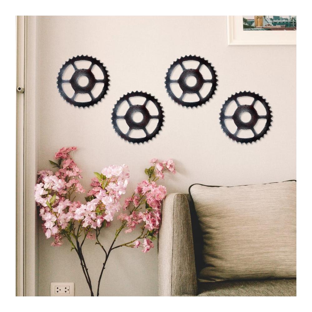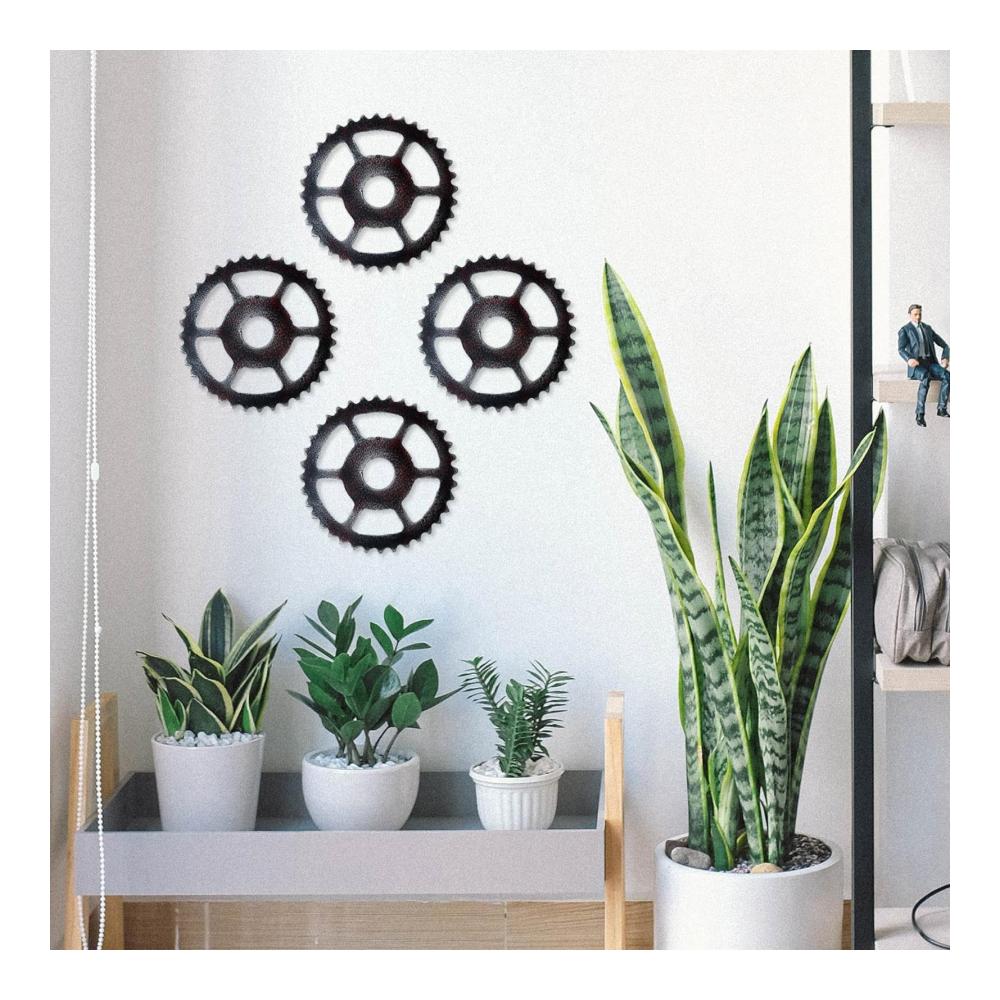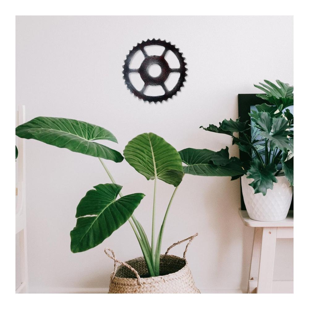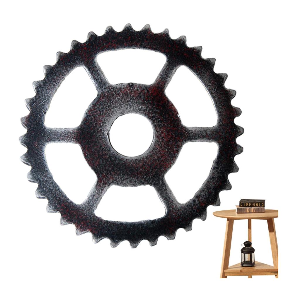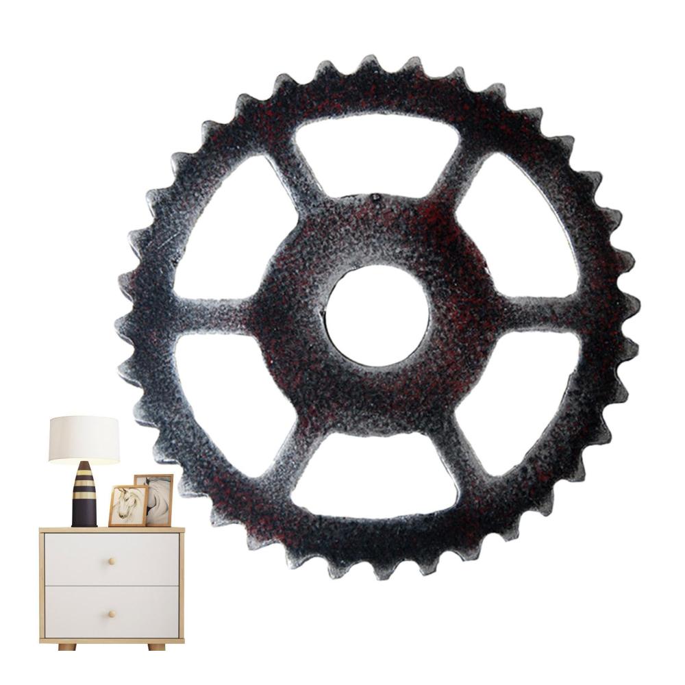 Auffälliger Charme: Die industrielle Zahnradform und einzigartige Handwerkskunst verleihen dieser Wandskulptur ein Vintage-Gefühl und Retro-Stil.