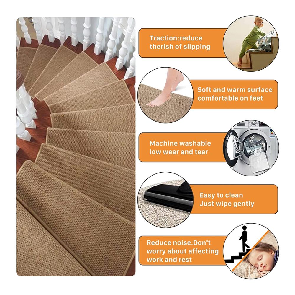 ✅Skid Stair Treads- Treppenläufer für Stufen sind aus hochwertigem Teppich, verhindert das Verrutschen und reduziert Geräusche beim Auf- und Absteigen der Treppe. Sorgt für ein weiches, gepolstertes Gefühl an Ihren Füßen und schützt gleichzeitig die Oberfläche und die Vorderseite der Treppe