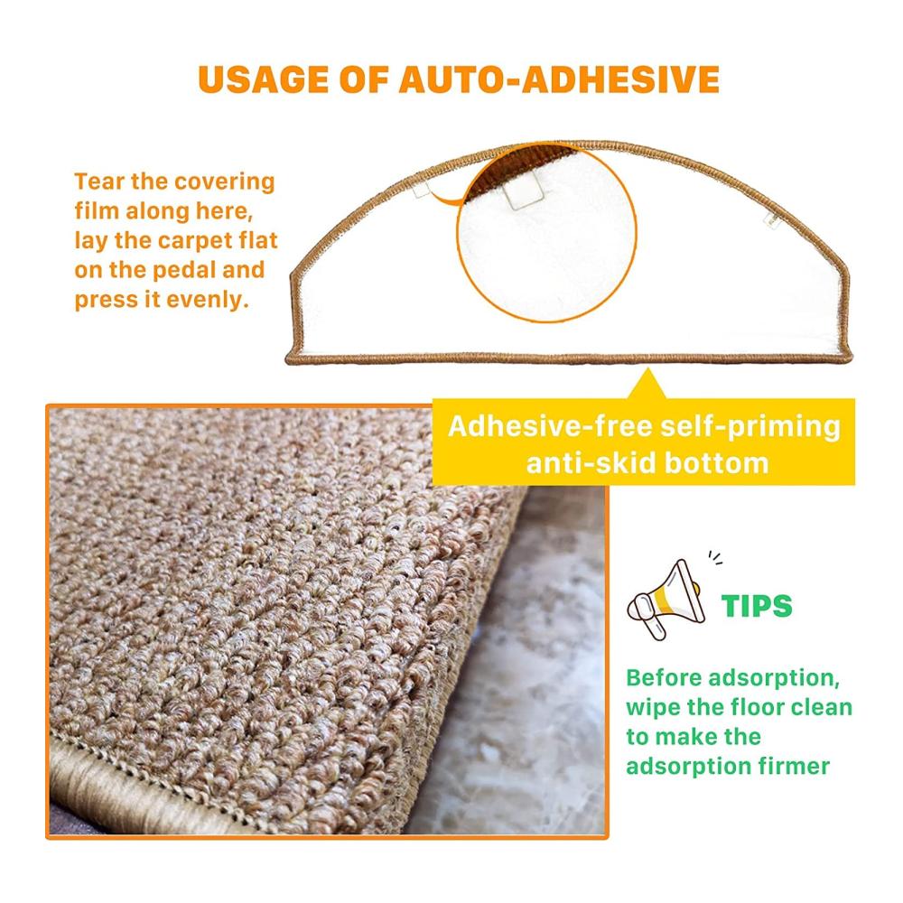 ✅Langlebige Treppenstufe – Entfernen Sie die Schutzfolie von der Unterseite und der Stufenteppich wird automatisch fest mit der Treppe verbunden, ohne Klebstoff. Sie können leicht mit einem Staubsauger gereinigt oder leicht in der Maschine gewaschen werden