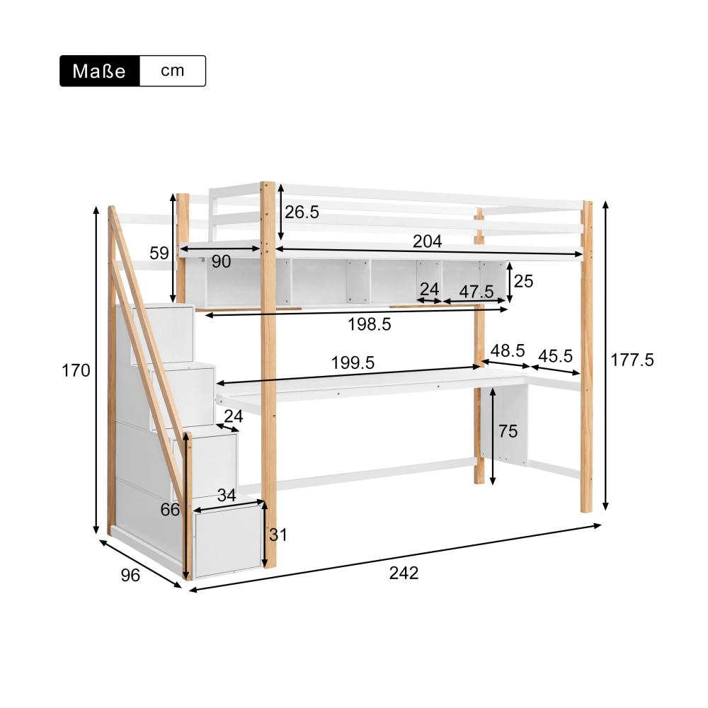 Integrierter Schreibtisch:Unser Kinderhochbett verfügt über einen geräumigen Schreibtisch unterhalb des Bettes. Dieser Schreibtisch bietet Ihrem Kind einen eigenen Arbeit.