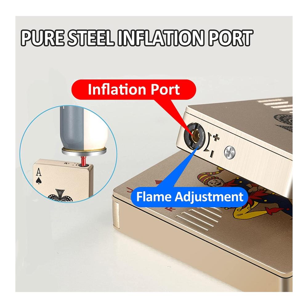 Einzigartiges Poker-Design! Dieses coole Sturmfeuerzeug mit Jetflamme ist ein unverzichtbares Accessoire für Abenteurer und Alltagshelden. Hergestellt aus hochwertiger Zinklegierung, besticht es durch sein edles Erscheinungsbild und seine Kompaktheit. Dank seiner winddichten Eigenschaften ist es perfekt für Outdoor-Aktivitäten wie Camping, Strandgrills und mehr geeignet. Das Feuerzeug ist nachfüllbar mit Butangas und verfügt über eine einstellbare Flamme für optimale Benutzerfreundlichkeit. Machen Sie sich oder Ihren Liebsten mit diesem Feuerzeug eine Freude – ideal als Geschenk für jede Gelegenheit!