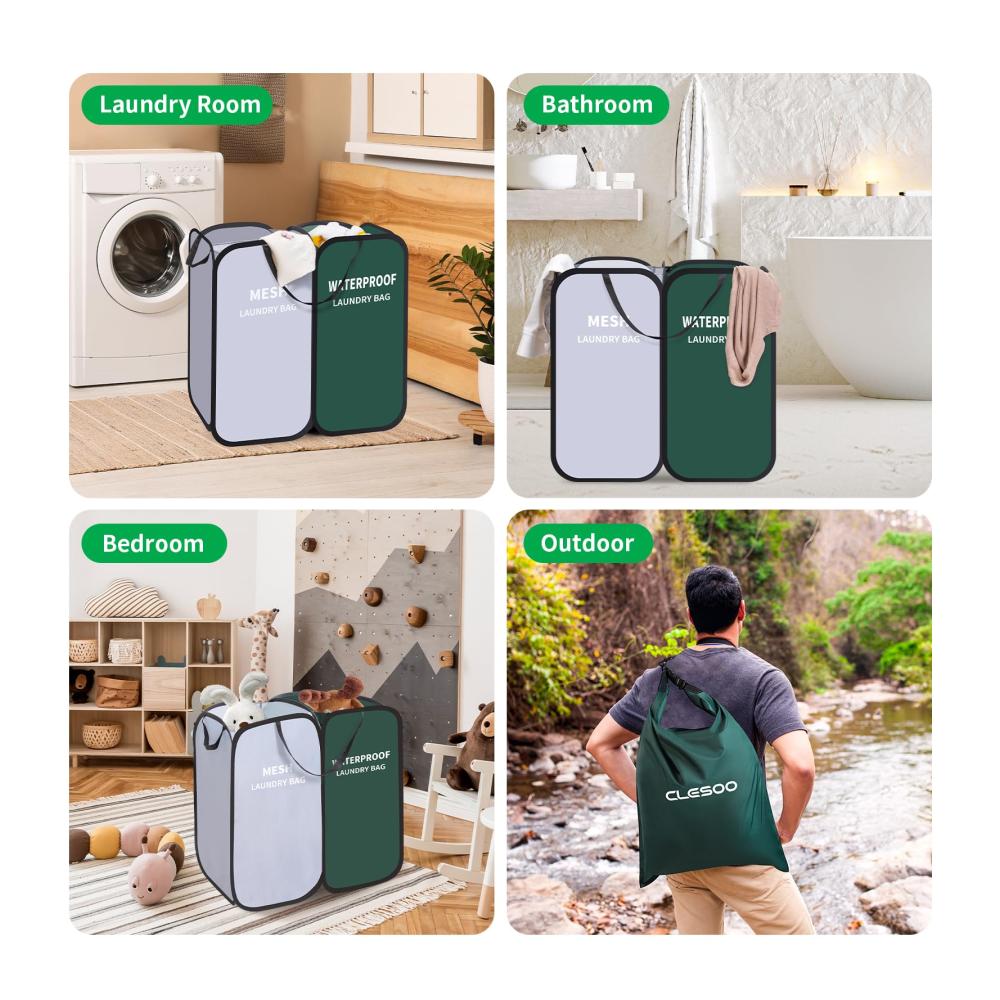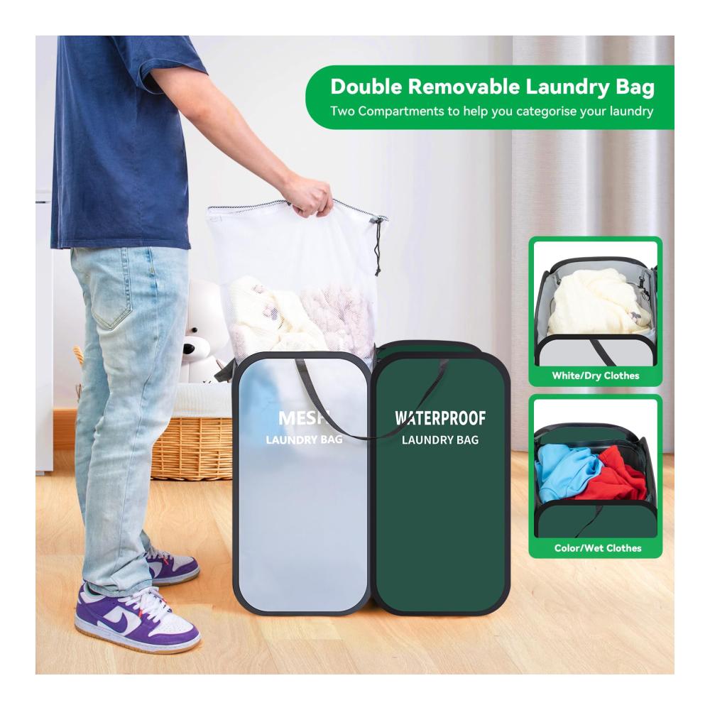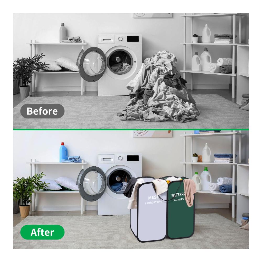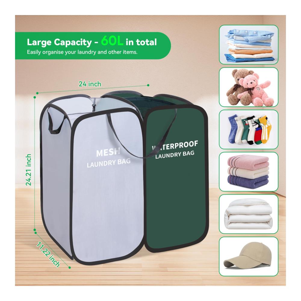 Entdecken Sie die Vielseitigkeit unserer faltbaren Wäschekörbe – der Pop-Up Wäschekorb mit wasserdichtem Wäschesack und abnehmbarem Wäschenetz ist die perfekte Lösung für effizientes Wäschesortieren. Mit 2 Fächern und einem beeindruckenden Fassungsvermögen von 85 Litern bieten unsere Großraum Laundry Baskets genügend Platz für Ihre gesamte Wäsche. Die Wäschetonne ist faltbar und lässt sich somit platzsparend verstauen. Ideal für Bad und Waschraum, ist diese Wäschetruhe nicht nur funktional, sondern auch stilvoll. Holen Sie sich jetzt den praktischen Wäschesammler für eine organisierte und stressfreie Wäschepflege!