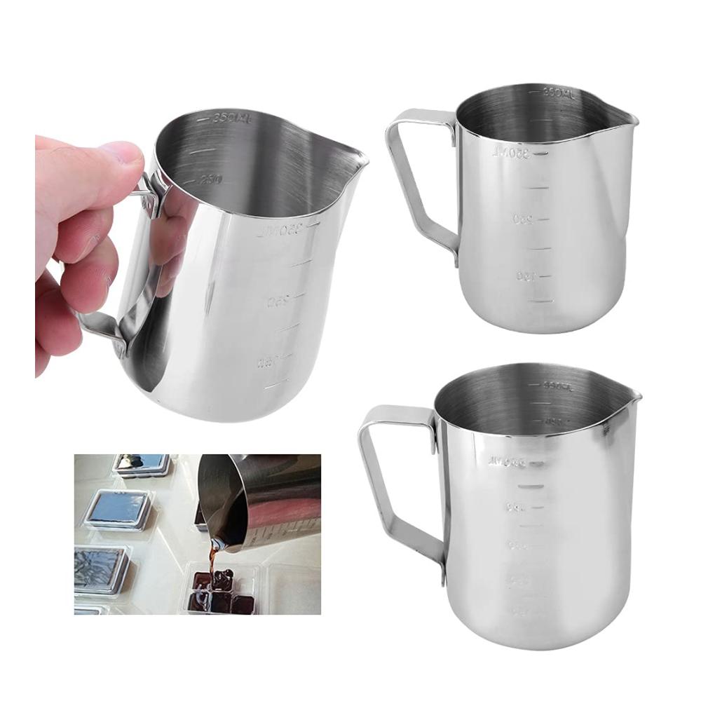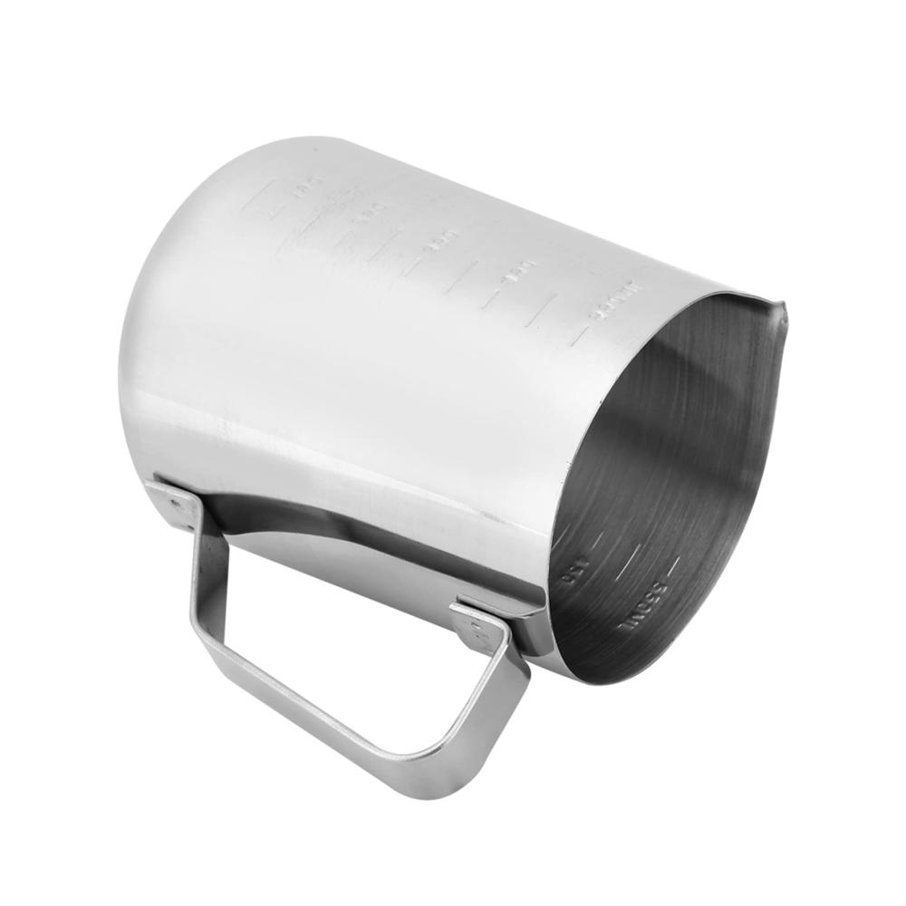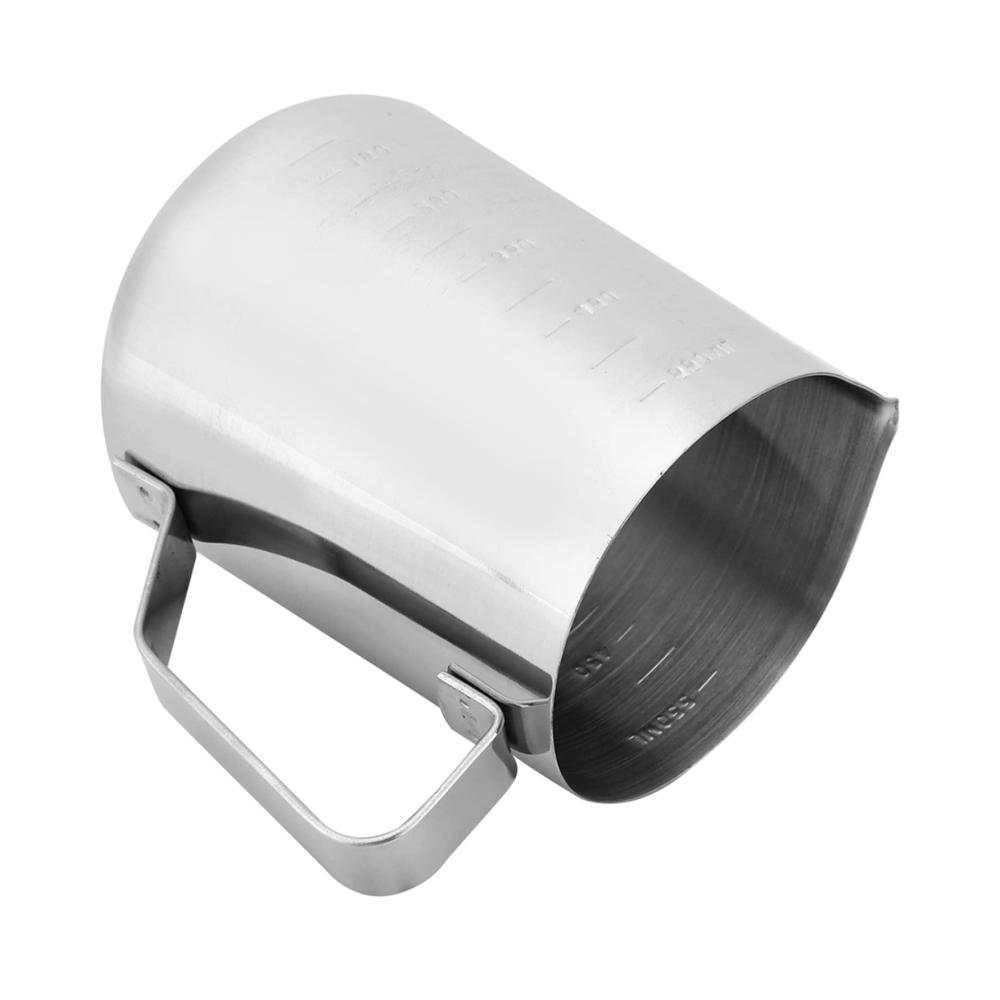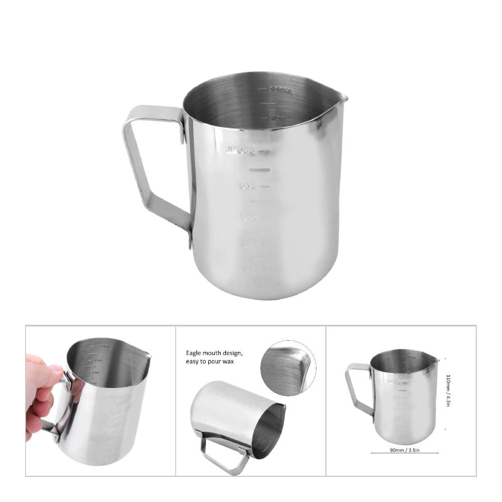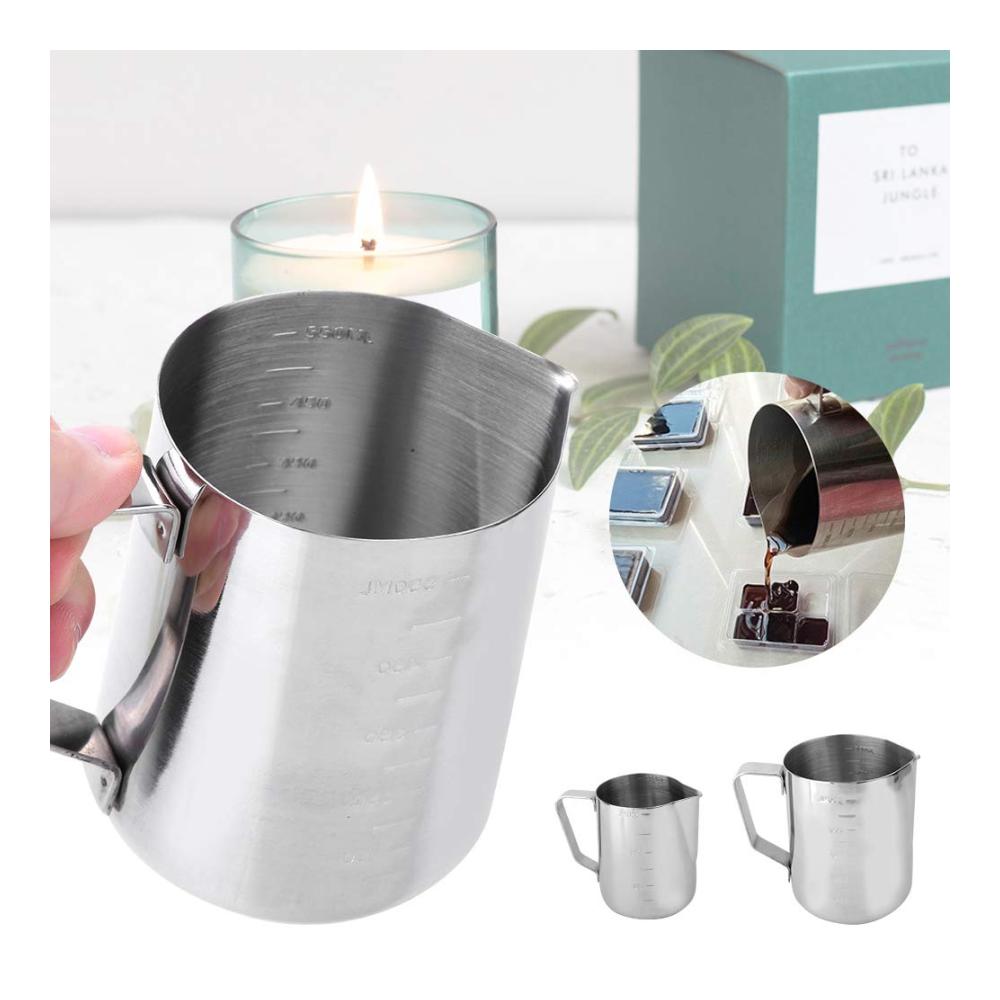 Ergonomisch geformter Griff: Der Kerzentopf aus Edelstahl verfügt über einen ergonomisch geformten Griff für bequemen Halt. Doppelseitige Skala zur einfachen Verwendung. Die Oberfläche ist spiegelbehandelt, die Innenseite gebürstet und der Glanz ist gut. Geringes Gewicht und kompakte Größe, einfach zu tragen und zu verwenden.