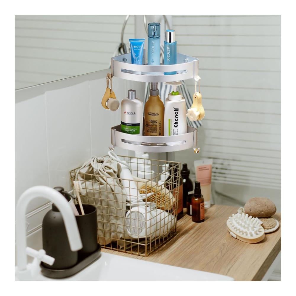 Praktische Duschkörbe & Ablagen 360° Drehbar Ohne Bohren! 2er-Pack Eckregale – Selbstklebende Badezimmer Organizer für Shampoo Seife & mehr. Platzsparend &