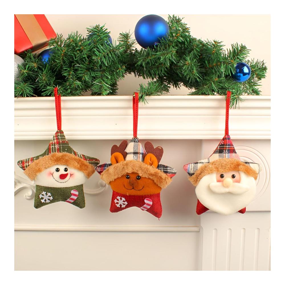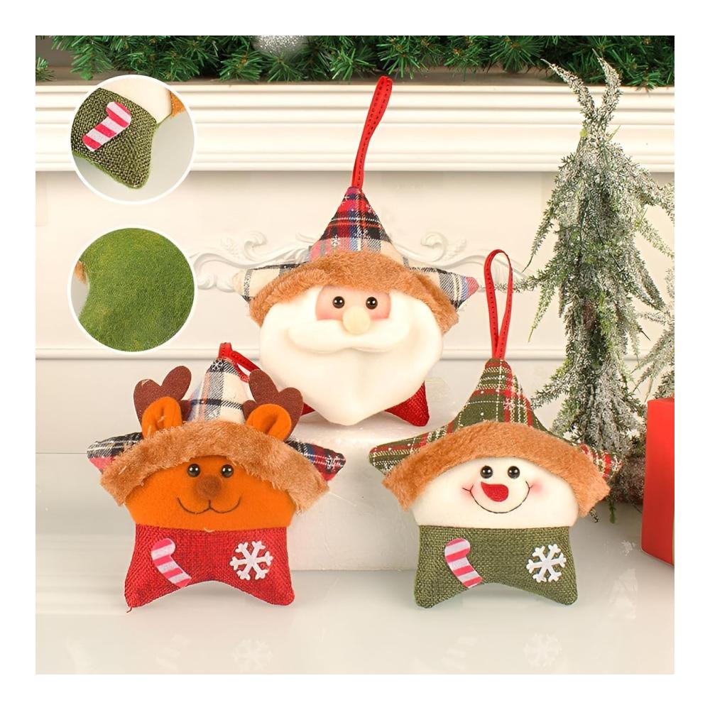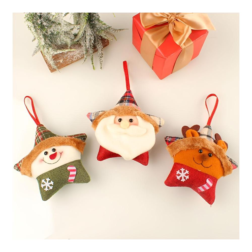 Entzückende Weihnachtsanhänger 3er Set Pentagramm Ornamente mit Weihnachtsmotiven – Weihnachtsbaum-Hängedekorationen mit Weihnachtsmann Elch und mehr für festlichen Baumschmuck