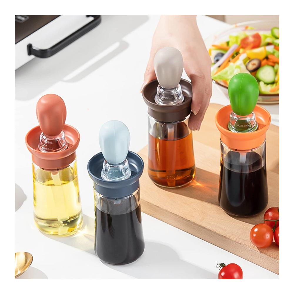 Entdecken Sie das einzigartige 2-in-1-Design unserer Glasölflasche mit Pinsel (180ml). Der lebensmittelechte PP-Silikon-Tropfer und die hitzebeständige Borstenbürste machen das Kochen zum Vergnügen.