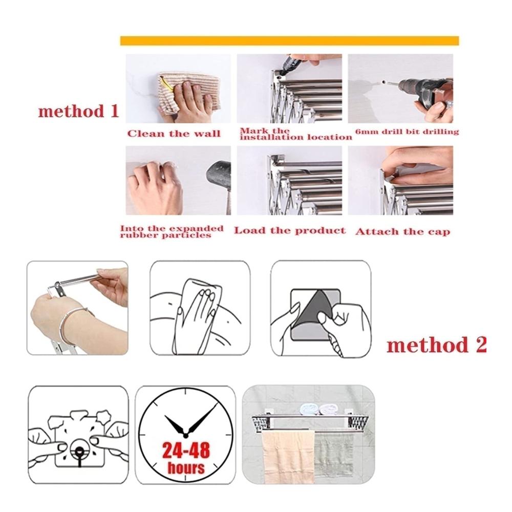 Einfache Installation: Dieser einziehbare Handtuchhalter verfügt über eine einzigartige Installationsmethode und ist mit kompletter Hardware ausgestattet, wodurch die Installation schneller und einfacher wird.Wird mit leicht verständlichen Anweisungen geliefert.