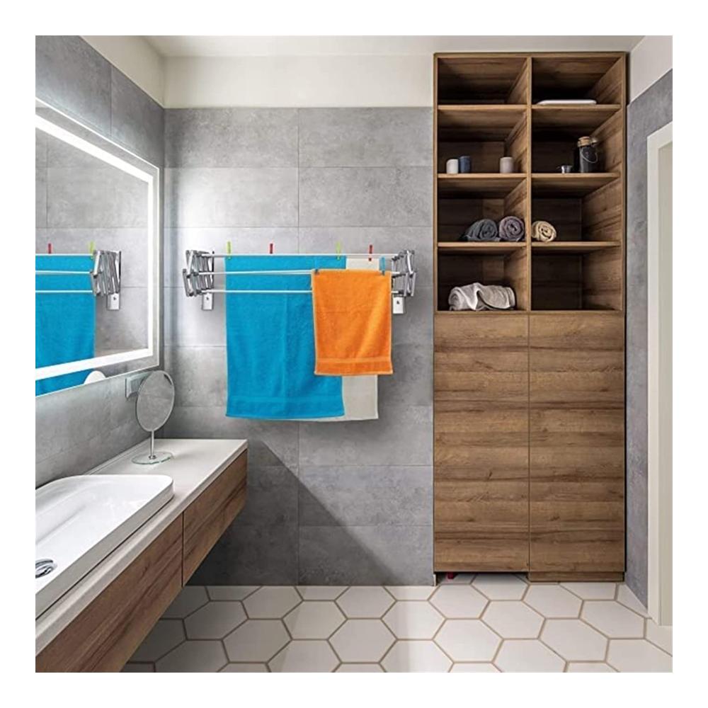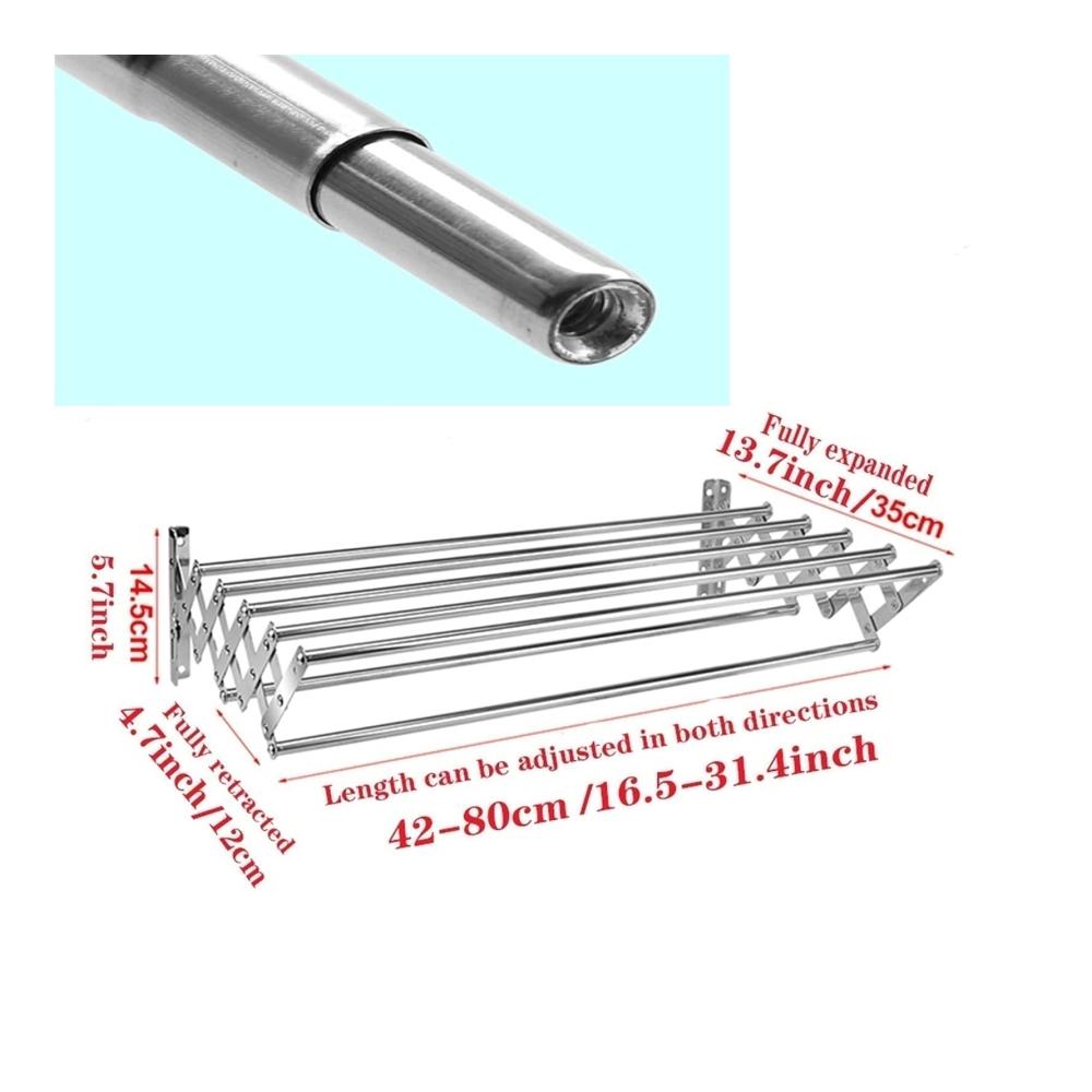Effizienter und platzsparender Wäscheständer: Dieser zusammenklappbare Kleiderständer ist faltbar und kann an der Wand montiert werden, ideal für drinnen und draußen. Die einfache Installation wird durch eine einzigartige Methode und komplette Hardware erleichtert. Mit einer Länge von 42–80 cm und einer maximalen Belastbarkeit von 30 kg bietet er ausreichend Platz für Ihre Kleidung. Aus langlebigen und hochwertigen Materialien wie Edelstahl gefertigt, ist er rostfrei und leicht zu reinigen. Dieser multifunktionale Ständer eignet sich perfekt zum Lufttrocknen, spart Energiekosten und hält Ihre Handtücher sauber und ordentlich. Geeignet für den Einsatz in verschiedenen Bereichen wie Wohnungen, Waschküchen, Schlafzimmern und sogar sonnigen Hinterterrassen.