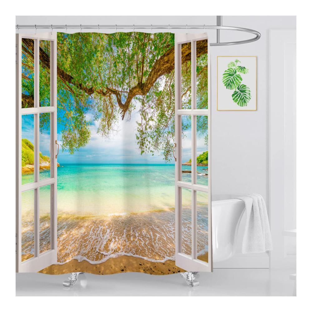 Dank seiner Antischimmel-Beschichtung bleibt Ihr Duschvorhang lange Zeit sauber und hygienisch. Er ist wasserdicht und schützt effektiv vor Spritzwasser, während Sie duschen oder baden. Das Türkis des Meeres und das frische Grün der Blätter schaffen eine beruhigende Atmosphäre und verleihen Ihrem Badezimmer einen Hauch von Natur.