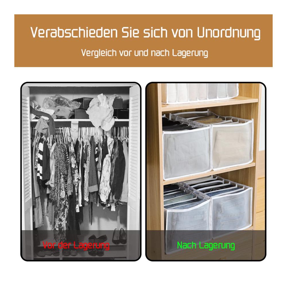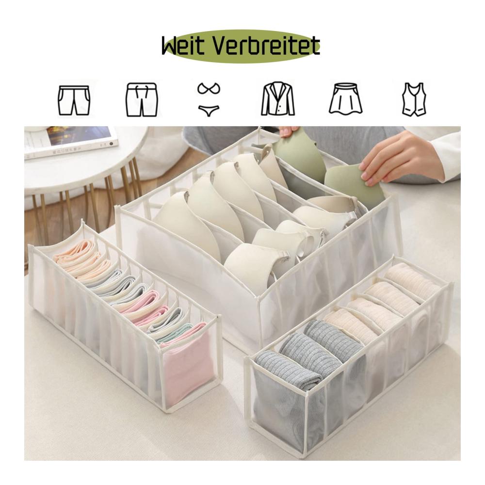 Dank des visualisierten Gitterdesigns sparen Sie nicht nur Platz, sondern auch Zeit beim Finden Ihrer Kleidung. Nutzen Sie die vielseitigen Aufbewahrungsboxen für Jeans, T-Shirts, Unterwäsche und mehr. Die 7 Gitter ermöglichen eine optimale Organisation.