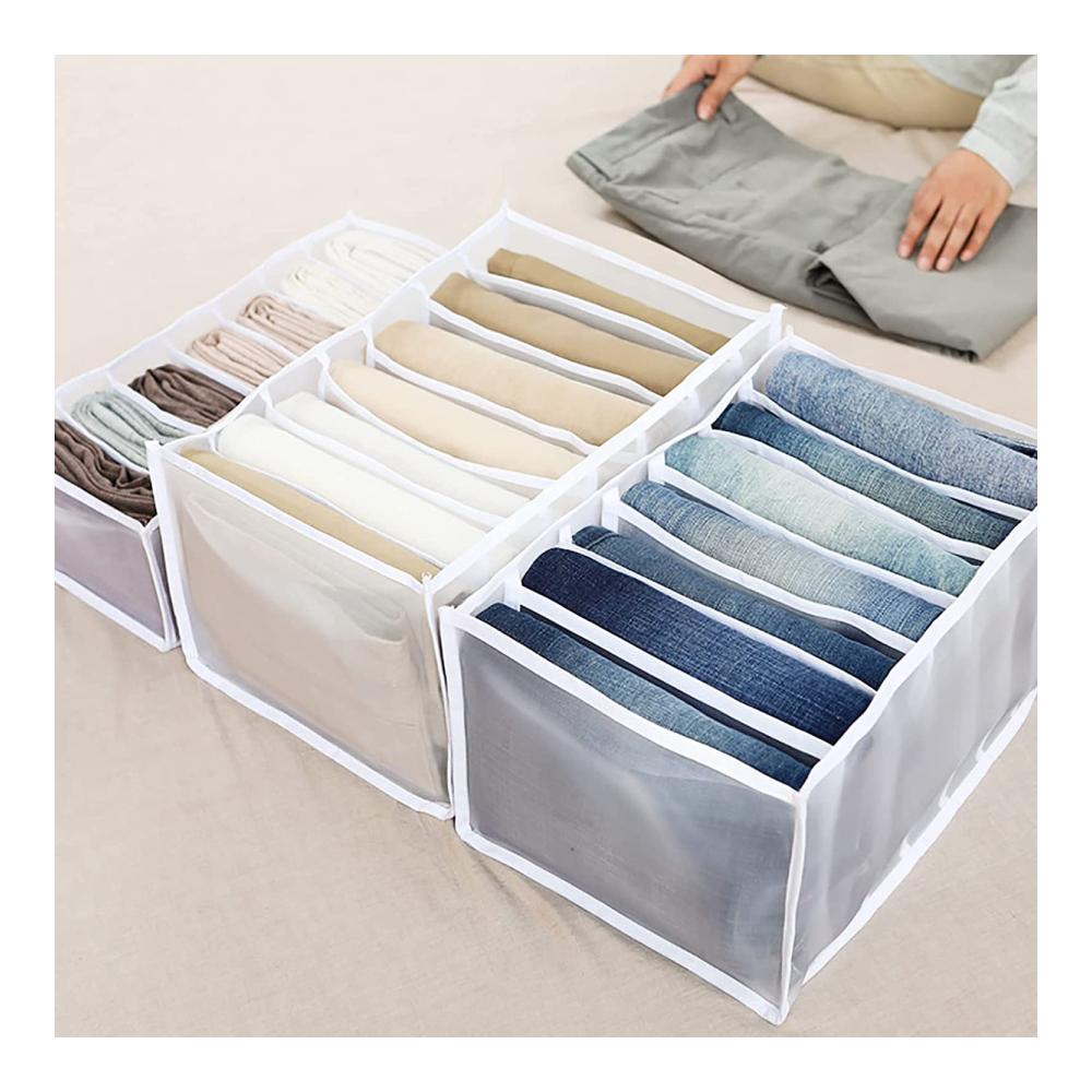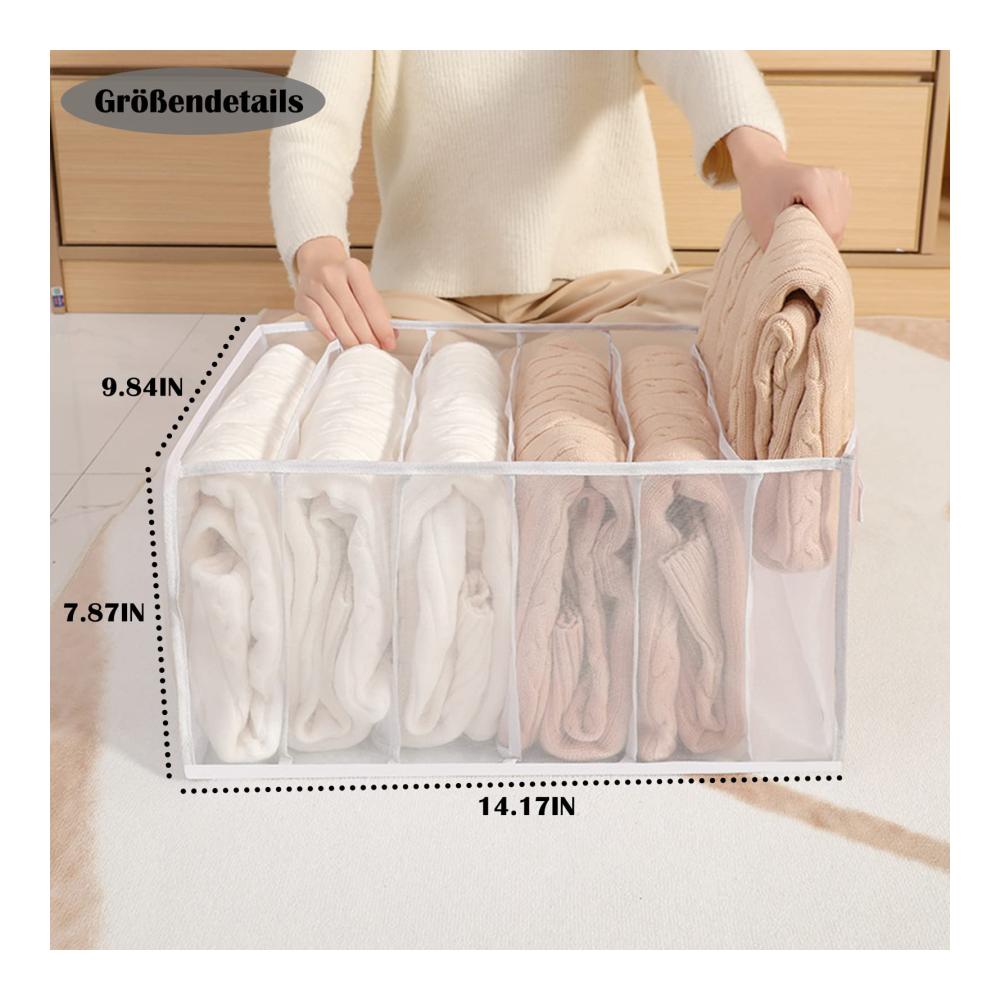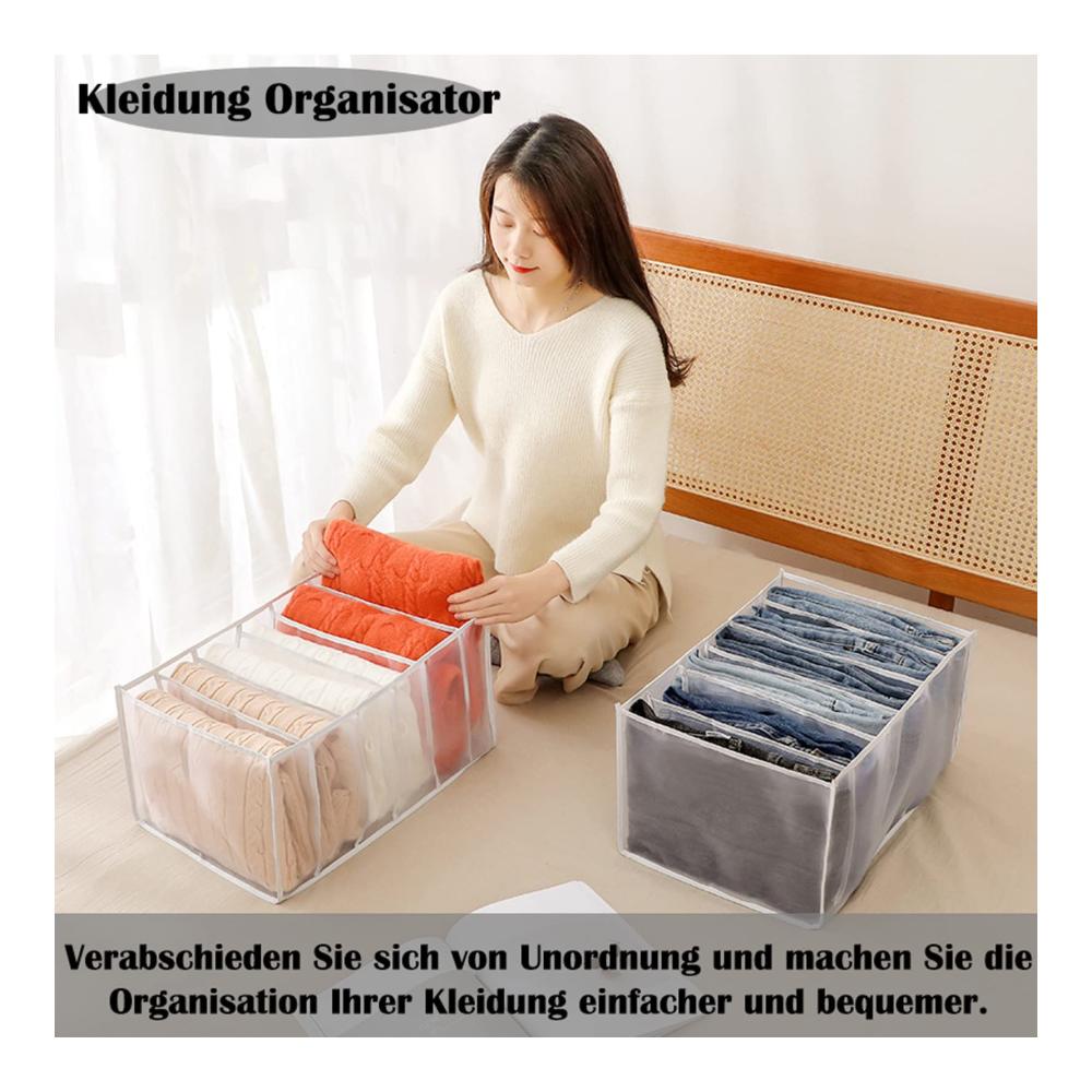 Vielseitigkeit: Diese Aufbewahrungsbox eignet sich sehr gut zum Aufbewahren von Jeans, T-Shirts, Röcken, Leggings, Unterwäsche, Socken, Schals und anderen Gegenständen. Sie können es zur Aufbewahrung in Schränken, Schubladen, Schminktischen, Bettböden usw. verwenden. Es gibt 7 Gitter zum Sortieren und Ordnen Ihrer Sachen, um Ihren Wohnraum zu organisieren.