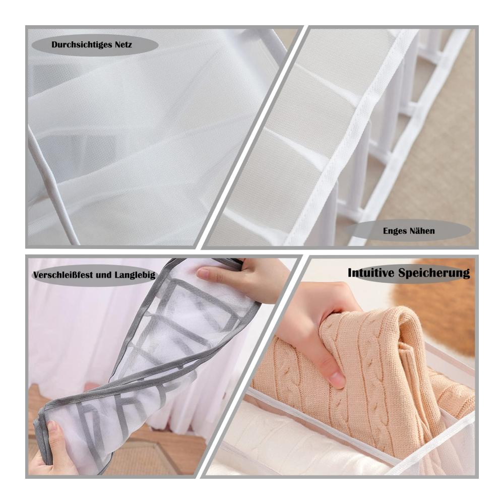 Sparen Sie Platz und Zeit: Mit der visualisierten Gitteraufbewahrungsbox können Sie bequem Kleidung mitnehmen, Zeit und Platz sparen und die Auslastung Ihres Kleiderschranks erheblich verbessern. Es kann in mehreren Schichten verwendet werden, um Ihren Kleiderschrank und Ihre Schubladen aufgeräumt zu halten.