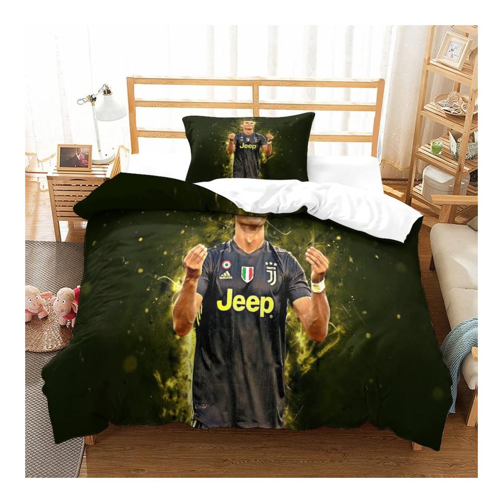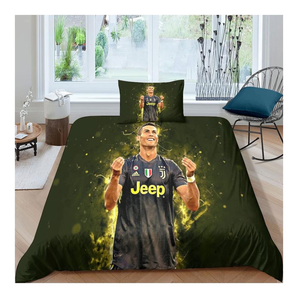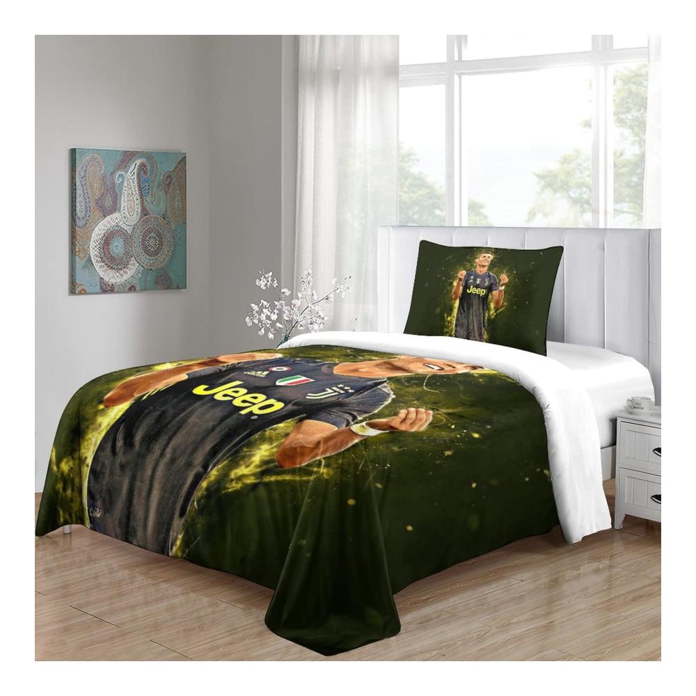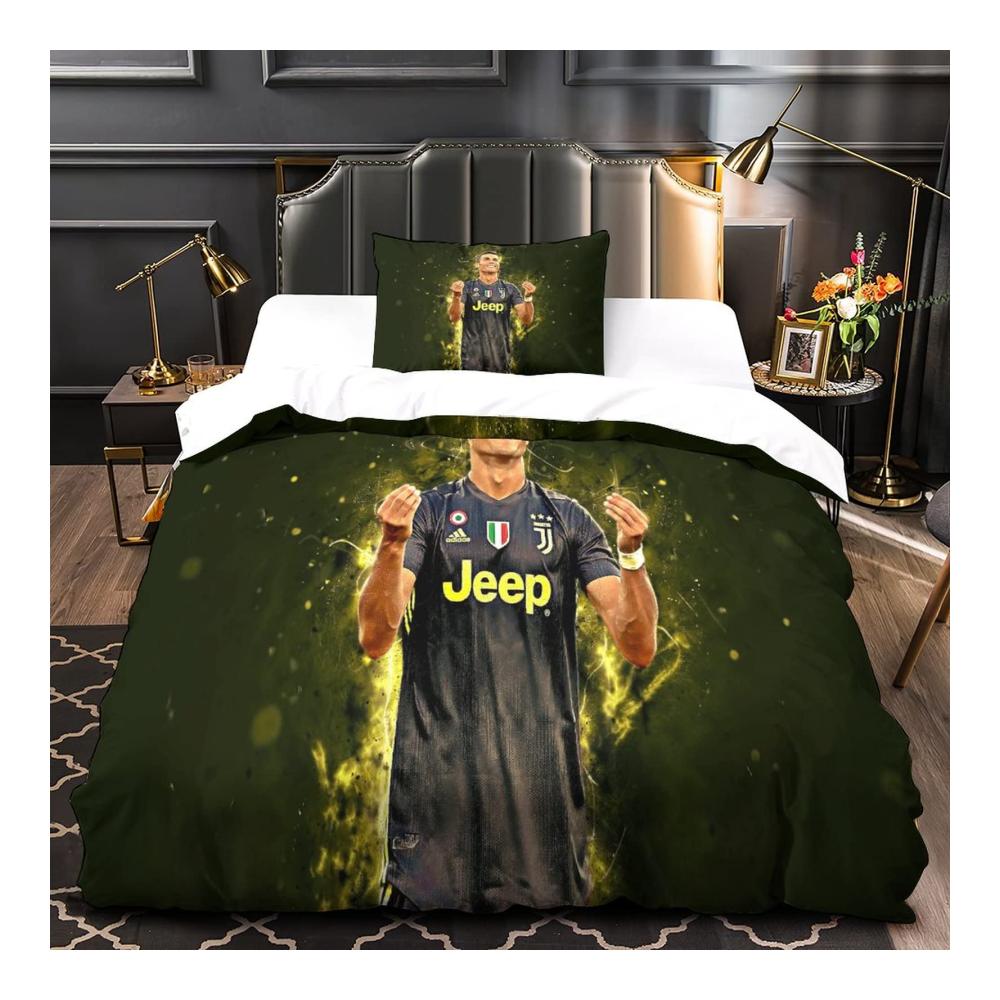 Entdecken Sie den ultimativen Schlafkomfort mit dem IVYARD Cristiano Ronaldo Bettwäsche-Set! Dieses exklusive 3D-gedruckte Bettbezug-Set bringt den Fußballstar in Ihr Schlafzimmer. Das Set besteht aus einem Bettbezug (135 x 200 cm) und einem Kissenbezug für ein Einzelbett.