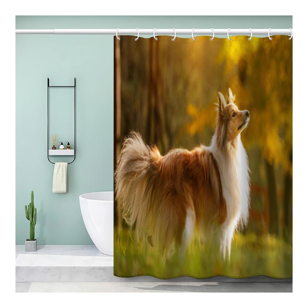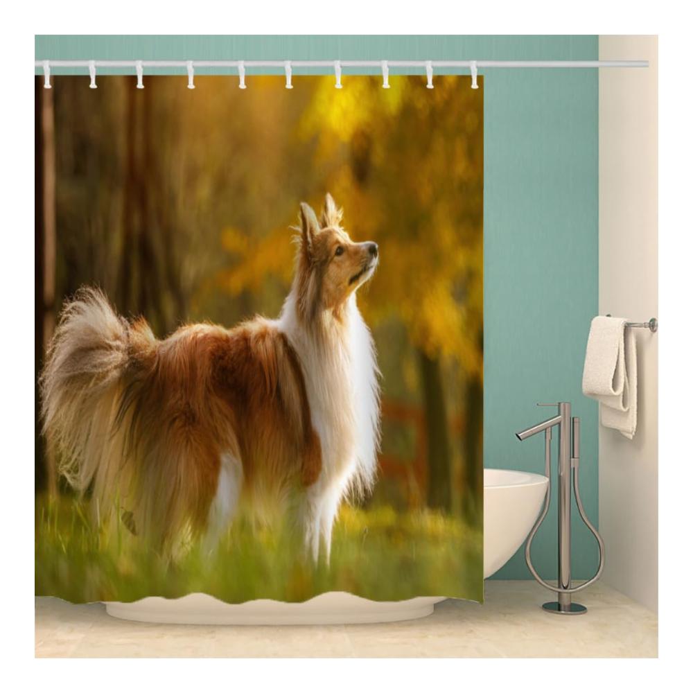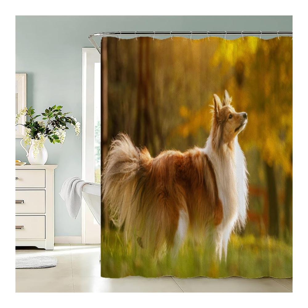 ❤【Funky Raum Dekoration】: Dieser Duschvorhang mit seinem einzigartigen 3D Herbstwald Digitaldruck und Shetland Schäferhund Motiv ist das perfekte Geschenk für Geburtstag, Einweihungsparty, Hochzeit oder Weihnachten. Ausgestattet mit praktischen Metalllöchern für eine einfache Aufhängung, kombiniert dieser Vorhang Funktionalität mit einem eleganten Drapierungsgefühl und schimmelresistenter Wirkung für ein stets frisches Badezimmerambiente.