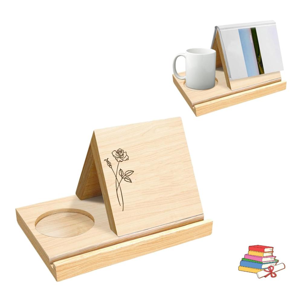 Bücherregal mit Kaffee- und Getränkehalter wird zur Tischdekoration (ausgenommen Kaffeetassen) verwendet und macht plissierte Buchrücken, Lesezeichen aus Papier oder gefaltete Ecken überflüssig. Wenn Sie mit dem Lesen fertig sind, öffnen Sie das Buch einfach und legen Sie es darauf. Ihr Buchhalter sorgt für Ihren Komfort und die sichere Aufbewahrung Ihrer wertvollen Bücher.