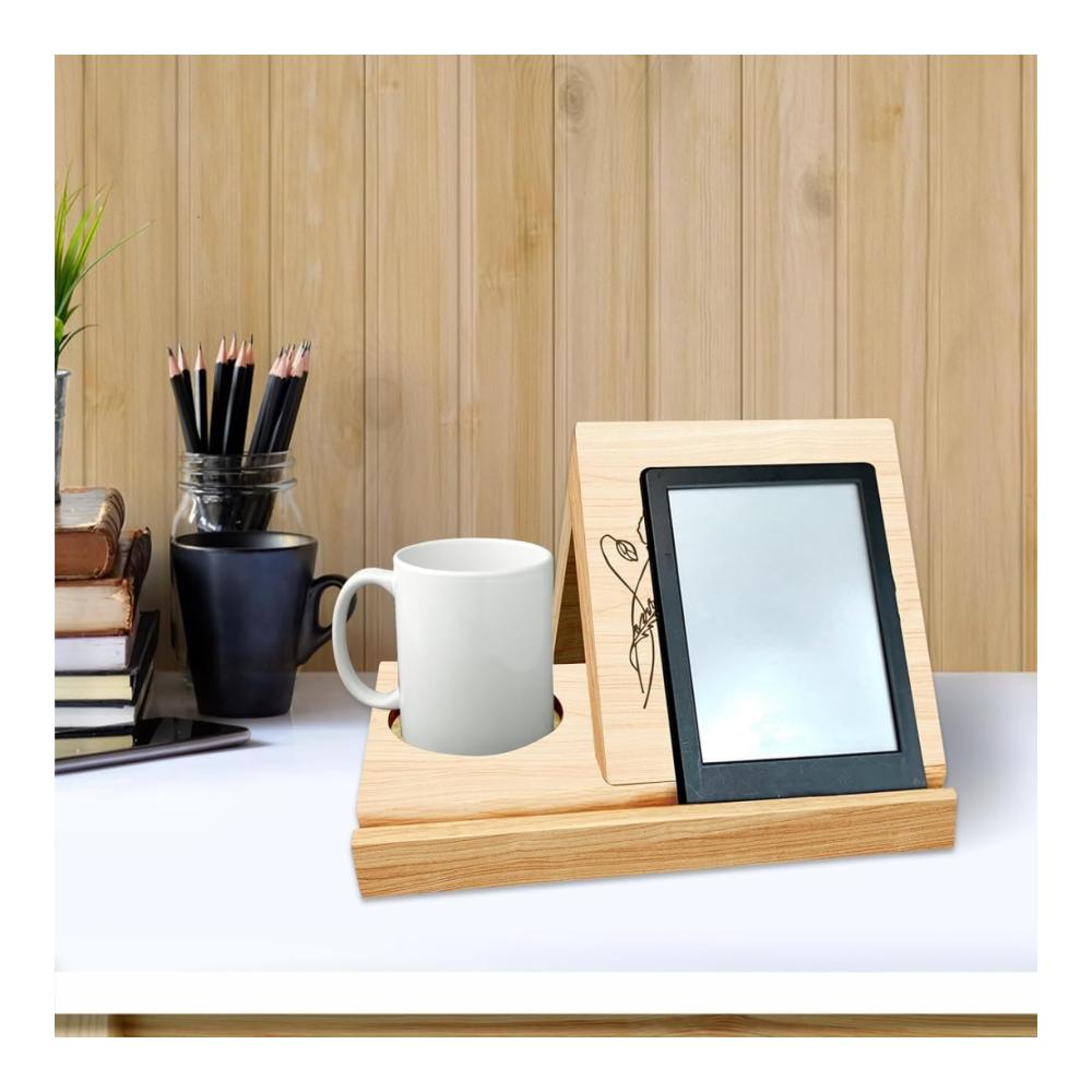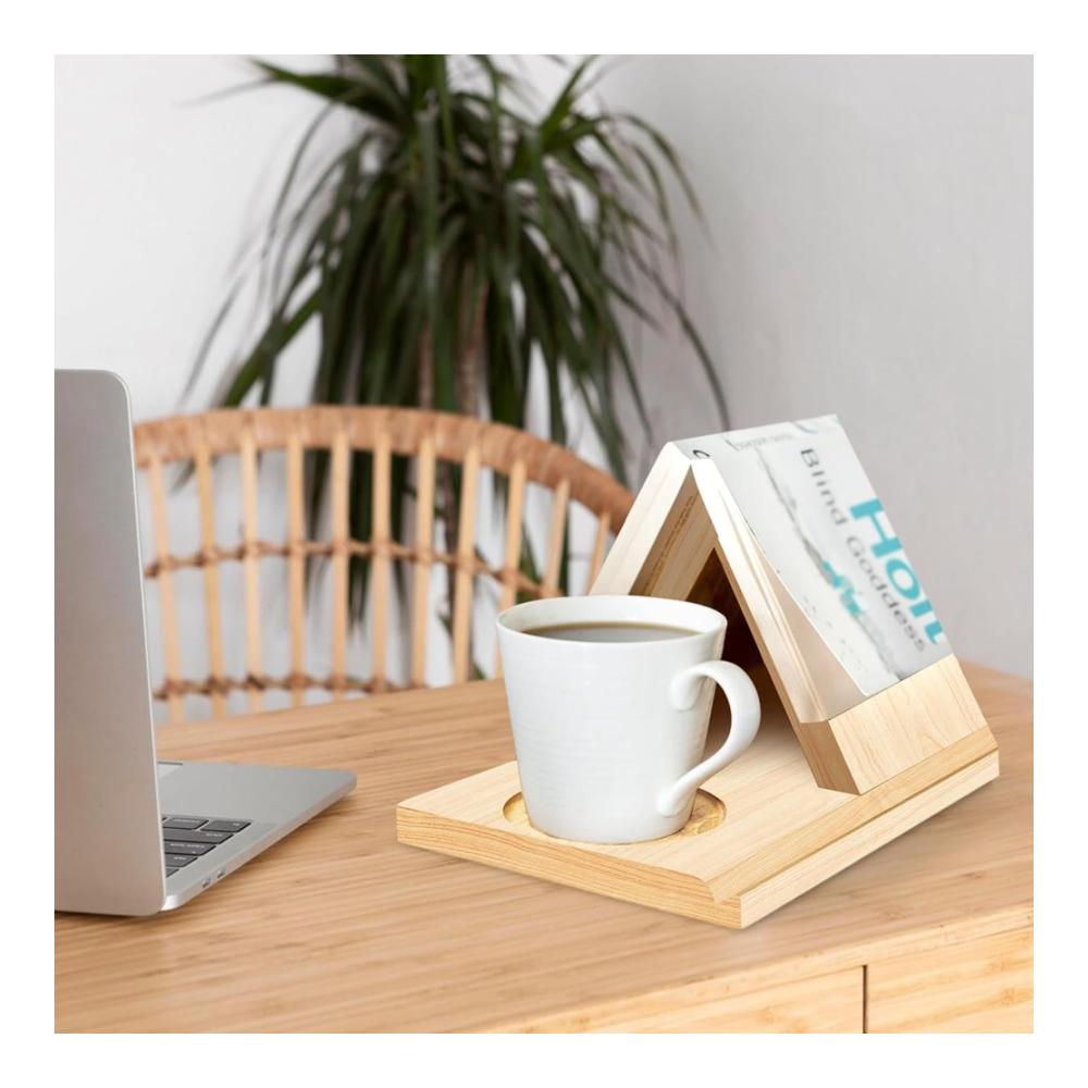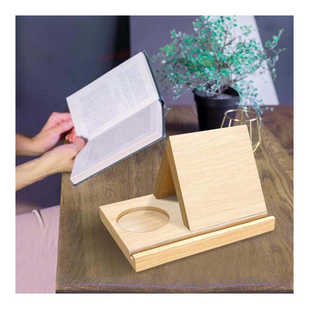 Dreieckiger Buchhalter aus Holz mit Getränkehalter kann mit einem E-Reader oder Tablet verwendet werden. Das dreieckige Bücherregal aus Holz bietet auch Platz für eine Kaffeetasse oder ein Glas Wasser, perfekt für alle, die gerne mit einem heißen Getränk in der