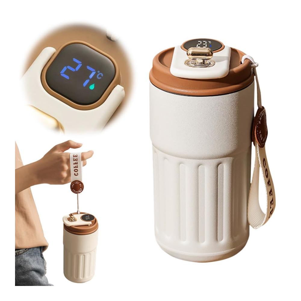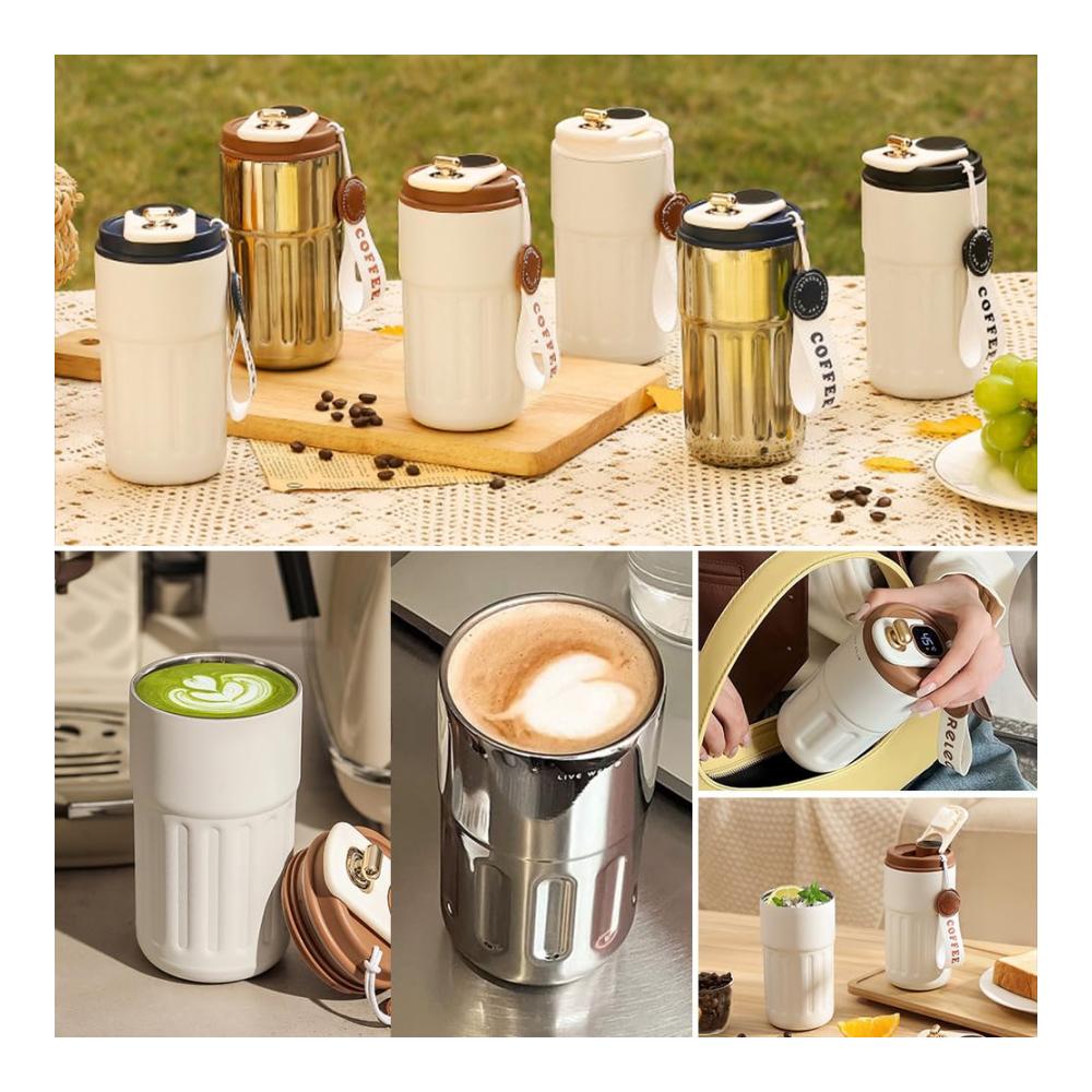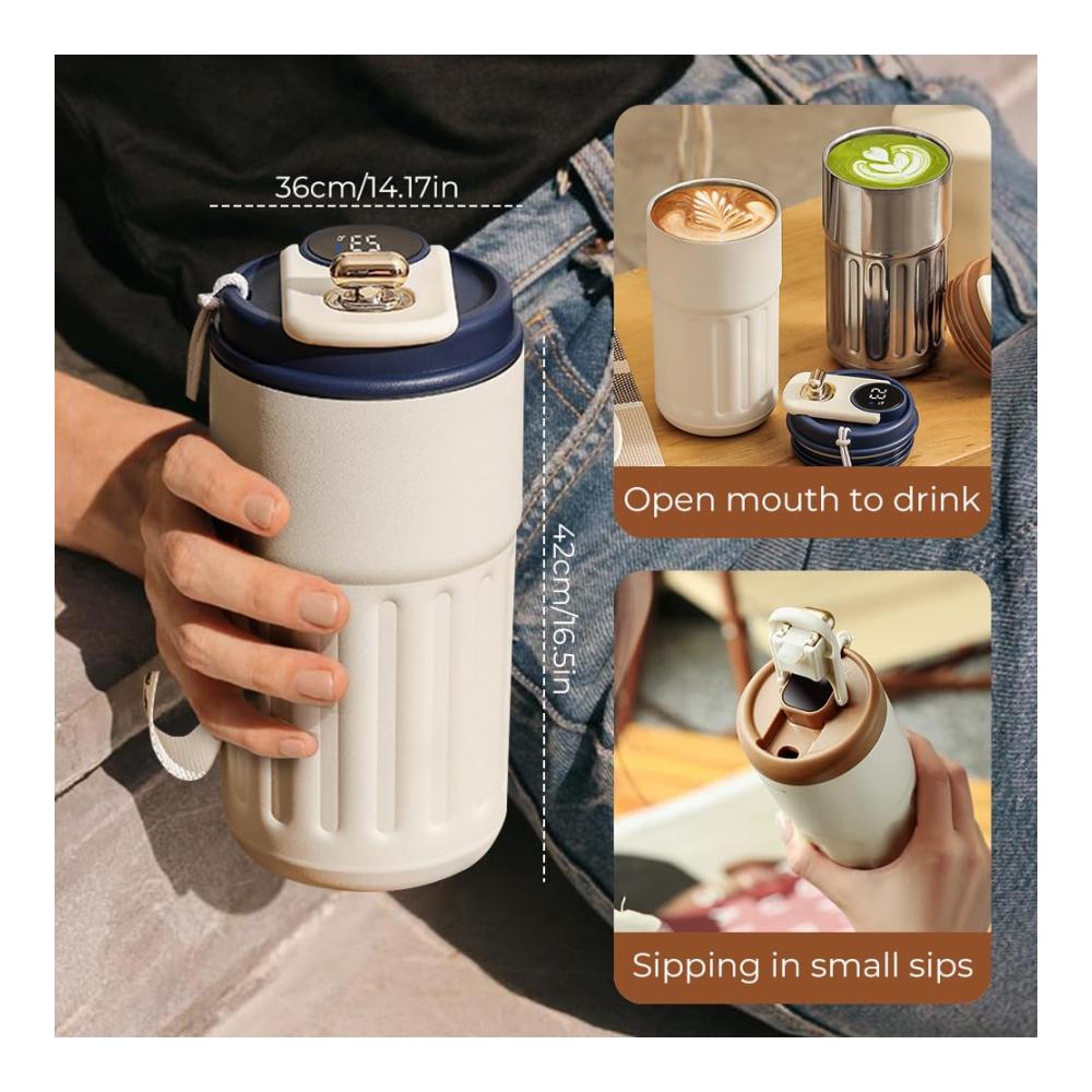 Kaffee-Thermoskanne mit Temperaturanzeige, Tragbarer Edelstahl-Isolierbecher mit Griff, Doppelwandige Vakuum auslaufsicher Reisebecher Kaffeebecher to Go, Männer Frauen Traveler Cup