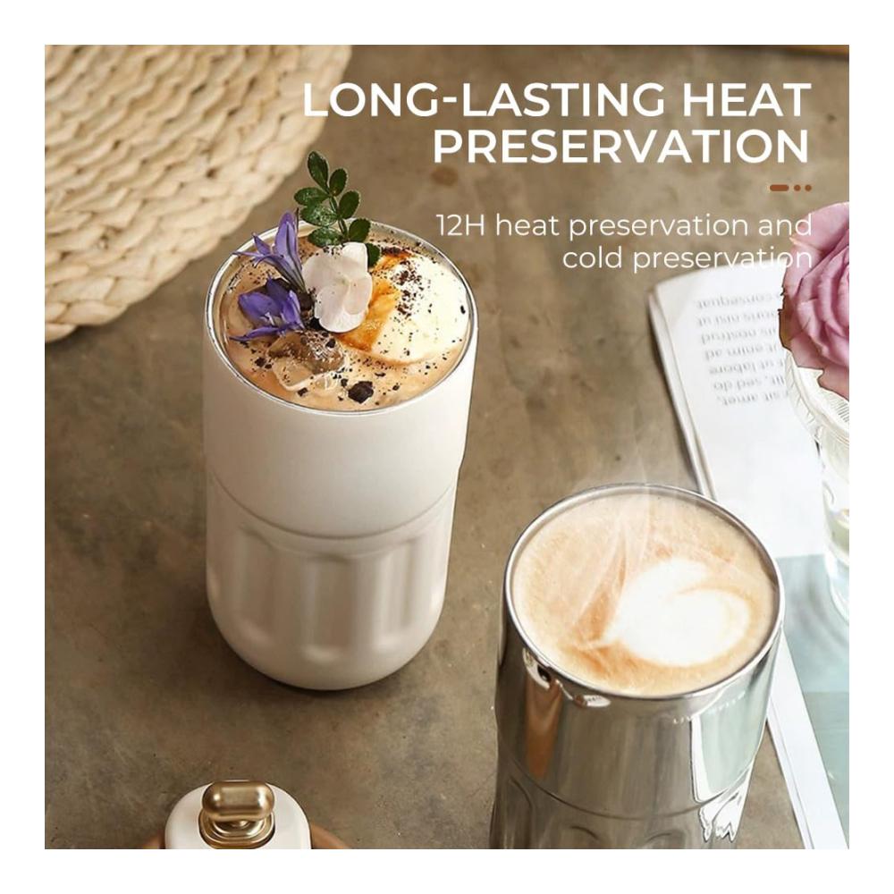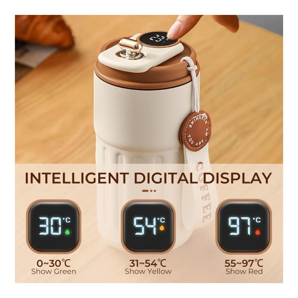 【Kaffee-Thermoskanne mit Temperaturanzeige】Diese Kaffeethermoskanne ist mit einer praktischen Temperaturanzeige ausgestattet, die Ihnen die aktuelle Temperatur anzeigt. So können Sie die ideale Trinktemperatur leicht überwachen und genießen, ohne sie erraten zu müssen. Auf diese Weise haben Sie immer eine perfekt heiße Tasse.