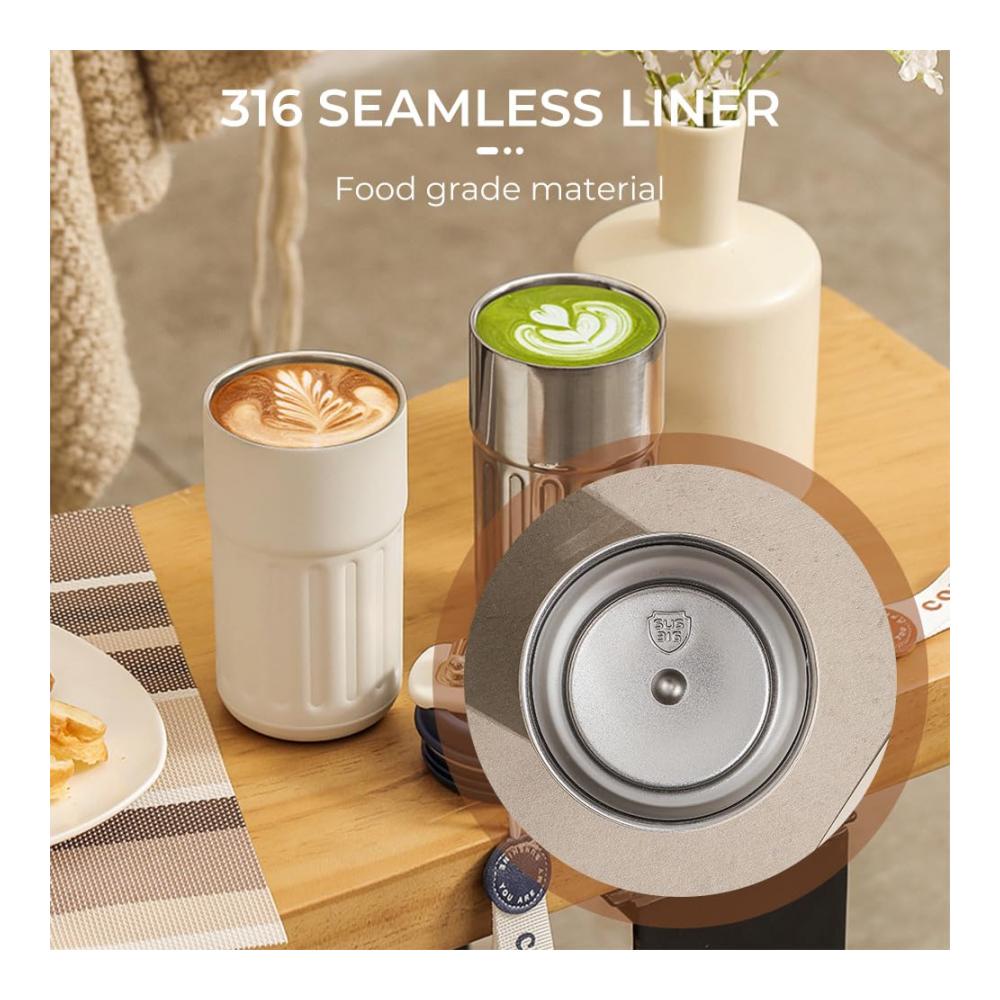 【Modisch und langlebig】 Das stilvolle Design macht den Becher zu einem Blickfang und eignet sich perfekt für Schule, Büro, Camping, Autofahrten und den täglichen Gebrauch. Der Edelstahl-Thermobecher ist vakuumisoliert und auslaufsicher und wird mit einem Trageband geliefert, damit Sie ihn bequem tragen können.