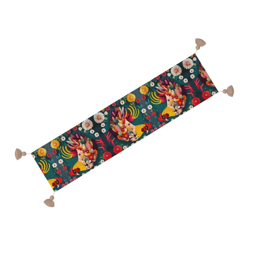 Blumenherz, Huhn. Dieser Tischläufer verfügt über ein einzigartiges Design mit durchgehender Breite, doppelseitigem Druck, was ihn zu einer auffälligen Ergänzung für Ihren Esstisch oder jede andere Oberfläche macht.