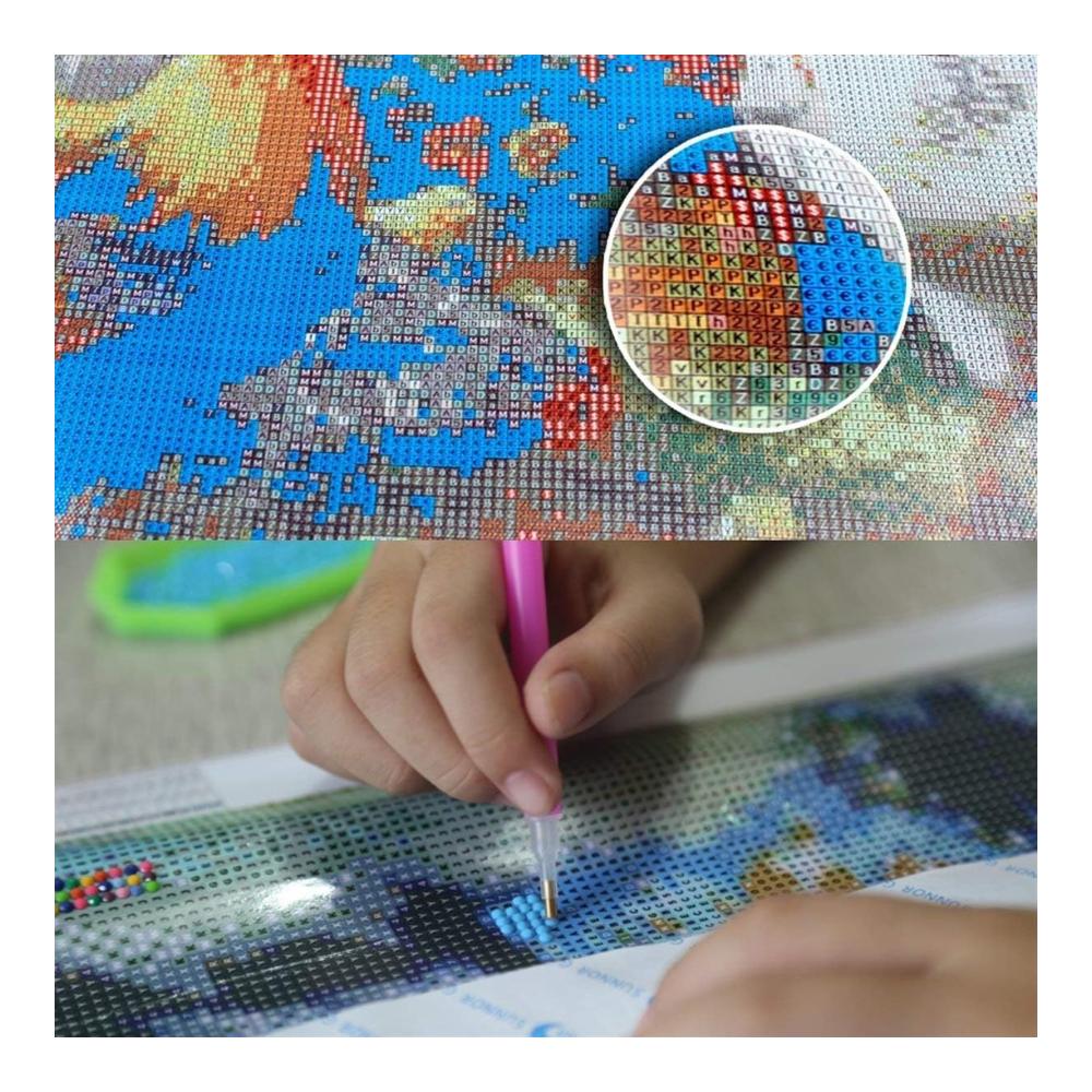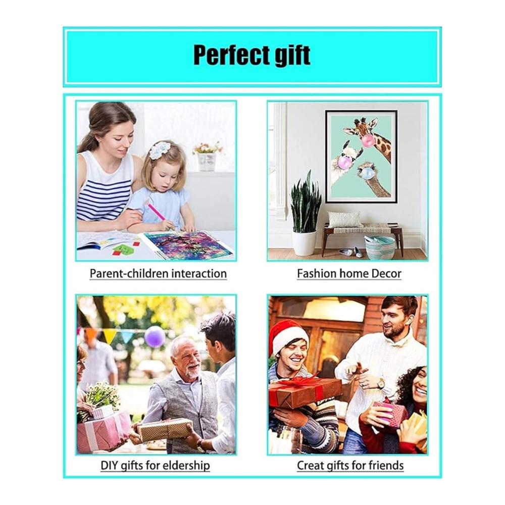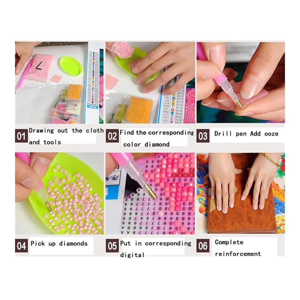 Willkommen in unserem Geschäft!Unser Diamantgemälde ist halbfertig und enthält keine Rahmen. Sie müssen es selbst fertigstellen! Das DIY 5D-Diamantgemälde ist eine einfache und unterhaltsame Aktivität for Jung und Alt.Es ist ein perfektes Geschenk, um Freunden und Familie die besten Wünsche auszudrücken.Es eignet sich auch als Wanddekoration oder gerahmt als Tischdekoration und bietet viele Möglichkeiten, es aufzubewahren.PAKET BEINHALTET:1 x HD-Öl-Leinwand1 x fester Kleber1 x Diamantstift1 x Würfel-DiamanttablettBunte DiamantenDIY-SCHRITTE:1. Öffnen Sie die Verpackung und nehmen Sie alle Vorbereitungswerkzeuge heraus.2.Legen Sie den Diamanten entsprechend der Nummer auf das Tablett.3. Tragen Sie geeigneten Festkleber auf die Stiftspitze auf und decken Sie einen Teil der Schutzfolie auf der Leinwand ab.4. Adsorbieren Sie den Diamanten mit der Stiftspitze und drücken Sie ihn an die entsprechende Stelle auf der Leinwand.5. Nachdem Sie das gesamte Foto fertiggestellt haben, drücken Sie die Diamanten mit einem Buch auf die Leinwand, um sie fester zu machen.6. for Schluss konservieren Sie es so, wie Sie es möchten.WARME HINWEISE:1. Bitte lassen Sie Kinder NICHT spielen, um Unfälle wie Verschlucken zu vermeiden.2. Wir fügen jedem Diamantbeutel zusätzliche 30 % Diamanten hinzu, damit wir sicherstellen können, dass Sie das Gesamtbild mit ausreichend Diamanten vervollständigen können.