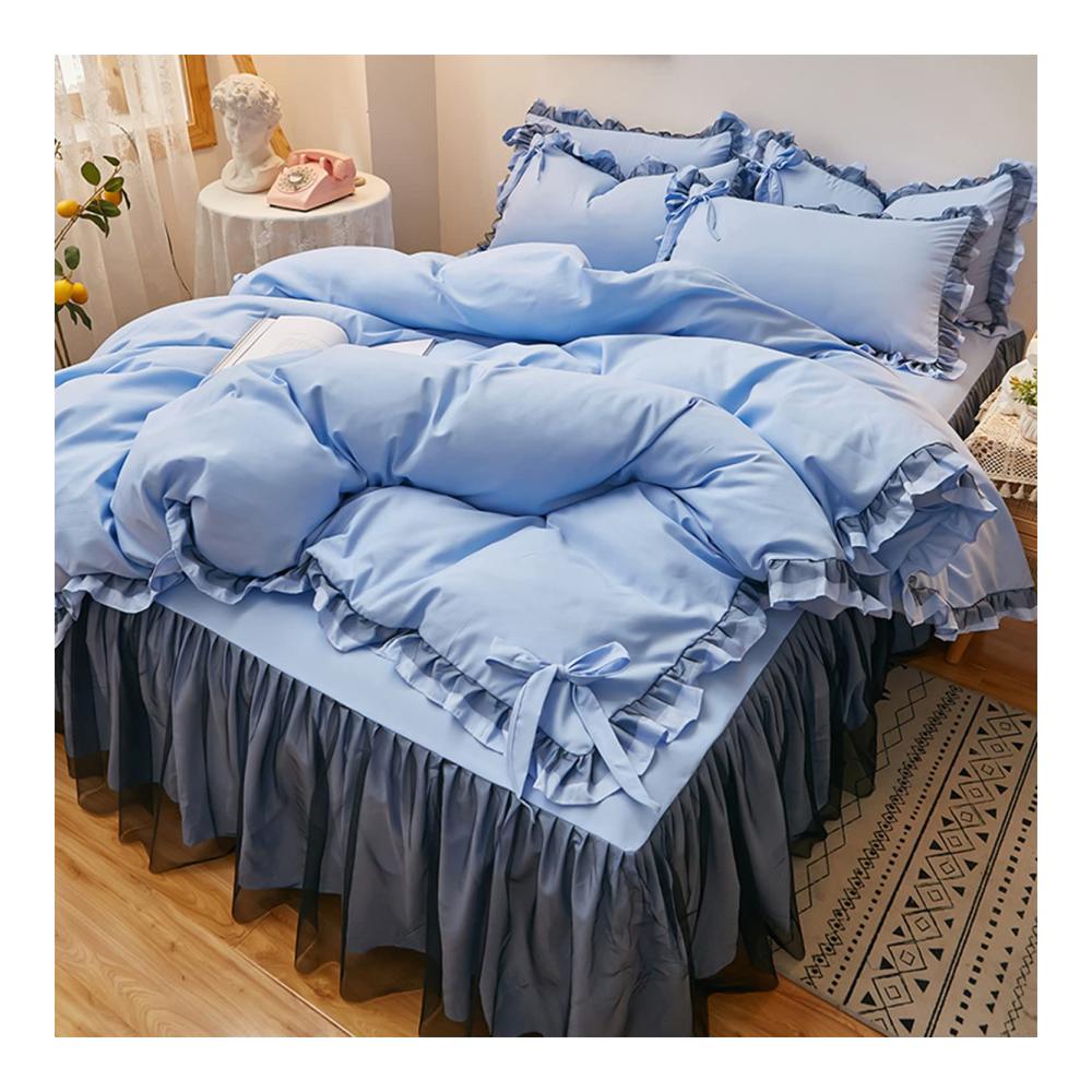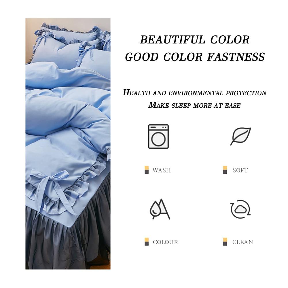 ⭐【Was Sie bekommen werden】 Das 4-teilige Bettdeckenset beinhaltet: 1 Bettbezug (90 Zoll lang x 78 Zoll breit), 1 Bettrock und 2 passende Kissenbezüge. Stoff und Füllung: 100 % Polyester. Zarte und elegante Spitzenrüschen schaffen ein charmantes und schönes Bettwäsche-Set für Sie.