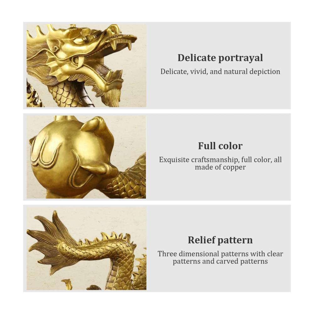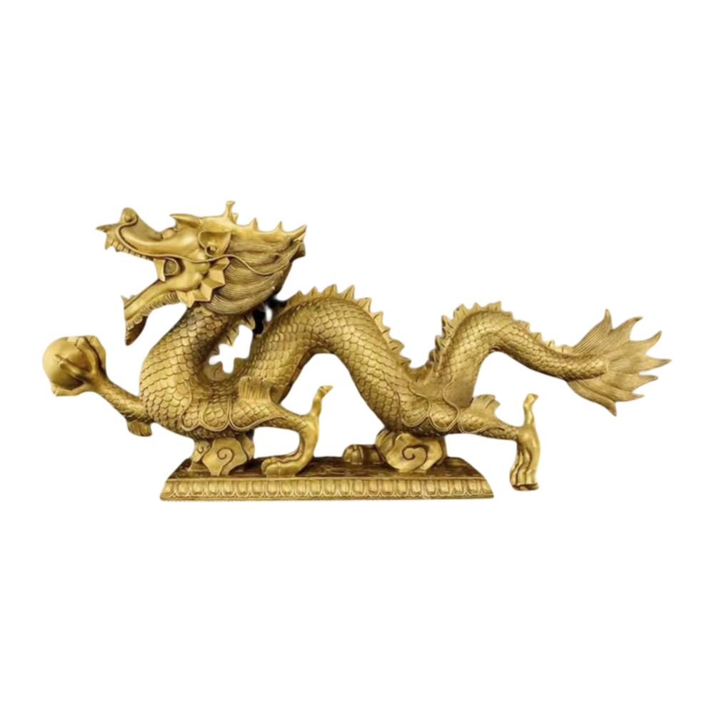Elegantes Messingmaterial: Diese chinesischen Drachenstatuen sind aus hochwertigem Messing gefertigt und zeigen einen atemberaubenden goldenen Farbton, der eine Aura der Raffinesse und des kulturellen Reichtums ausstrahlt, wodurch sie zu machenden Schreibtisch -Ornamenten oder dekorativen Stücken für Heim- und Büroräume führen.