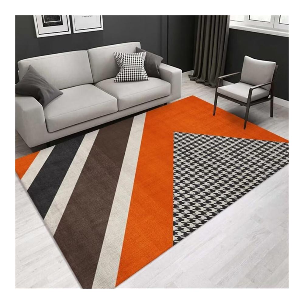 Tauchen Sie ein in Luxus mit unserem Läufer Teppich – Orange-Graues Geometrisches Muster, Rechteckig, für Ihr Wohnzimmer und Büro. Der hochwertige Samtstoff aus umweltfreundlichem Kristall bietet ein zartes, weiches Tragegefühl ohne Ballbildung. Die rutschfeste Unterseite aus Kunststoff gewährleistet sicheren Halt, während die handgefertigte Verarbeitung und feste Nähte eine langlebige Qualität garantieren. Vielseitig einsetzbar in Schlafzimmern, Fluren, Esszimmern und mehr. Unser personalisierter Service bietet Ihnen eine Auswahl an Farben und Größen. Kontaktieren Sie uns für Ihren individuellen Teppich