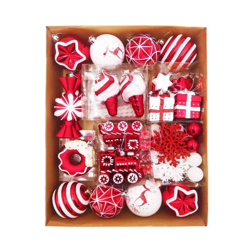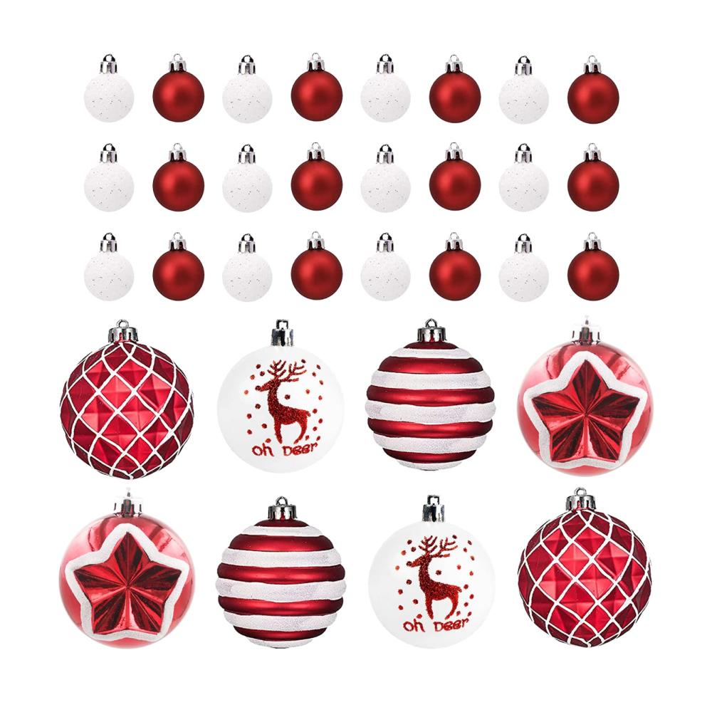 Verleihen Sie Ihrem Weihnachtsfest Glanz mit unserem 70-teiligen Weihnachtskugel Set in Rot & Weiß! Die Kunststoff-Kugeln sind bruchsicher und perfekt für den Christbaum. Jede Kugel ist mit einem Aufhänger ausgestattet, um Ihre Weihnachtsdeko einfach zu gestalten.