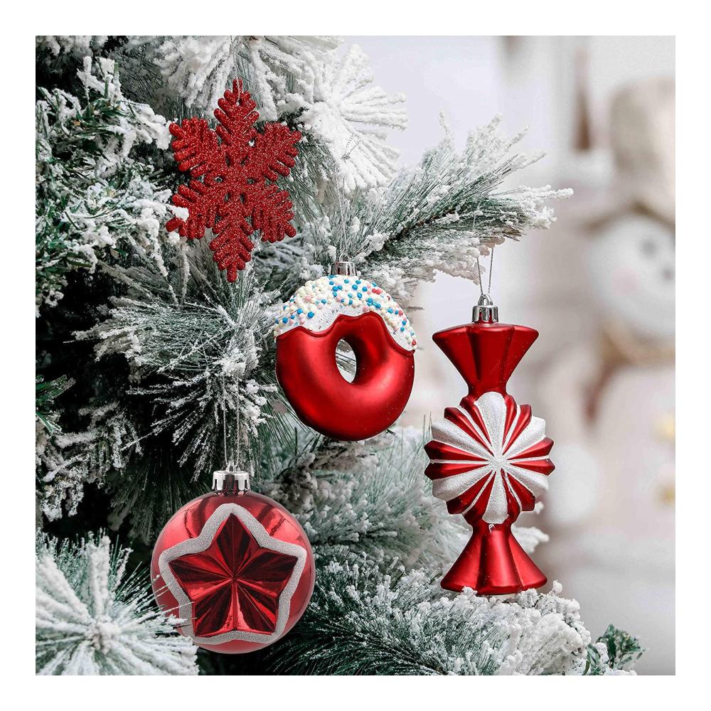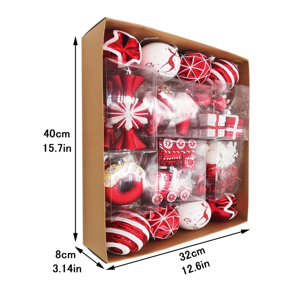 SVNVIOZ Weihnachtskugeln, 70-teiliges 8-cm-Weihnachtskugel-Ornament-Set, rot-grüne und weiße Weihnachtskugel-Ornamente, bruchsichere Weihnachtskugeln für die Weihnachtsbaumdekoration. ?? Verschiedene Weihnachtselemente Das Design ist vom klassischen Weihnachtsstil der Kollektion Pracht in Rot und Weiß inspiriert. Bekannte Formen und Größen werden durch überraschende Muster und Details hervorgehoben. Probieren Sie jedes Jahr ein klassisches und kreatives Farbthema aus, um Ihren Weihnachtsferien neue Überraschungen und Geschichten zu verleihen. Hinweis: Einige Weihnachtsdekorationen verwenden klebriges Puder. Das Herunterfallen des Puders ist normal, aber das Puder lässt sich leicht entfernen. ??Exquisite HandwerkskunstUnsere fantastischen Weihnachtsdekorationen umfassen spezielle Oberflächen: glänzend, matt, glitzernd. Jede Weihnachtskugel wird blasgeformt und anschließend handbemalt. Kugelornamente in verschiedenen Ausführungen und in neuartigen Formen passen zu all Ihren Lieblings-Baumdekorationen. Rustikaler, leichter Baumschmuck, der die Zweige des Weihnachtsbaums nicht belastet. ??Premium-QualitätDiese bruchsicheren Weihnachtskugel-Ornamente bestehen aus dickerem und umweltfreundlichem Kunststoff und bieten eine hervorragende bruchsichere Leistung. Nicht leicht kaputt und sicher für Sie und die Hände Ihrer Kinder. ??Bequeme VerwendungJedes kugelförmige Ornament ist zur einfachen Verwendung mit einer abnehmbaren Hakenschnur ausgestattet. Mit hochwertiger Farbe auf der Oberfläche, die nicht leicht verblasst. Die Ornamente eignen sich gut zum Aufhängen im Freien. ??Breite AnwendungDas Weihnachtsschmuck-Set ist ideal für die Dekoration in Hotels, Restaurants, Bürogebäuden, Partys, Hochzeiten, Jubiläen und so weiter. Es kann eine tolle Ergänzung zu Ihrer Weihnachts- und Feiertagsdekoration sein.