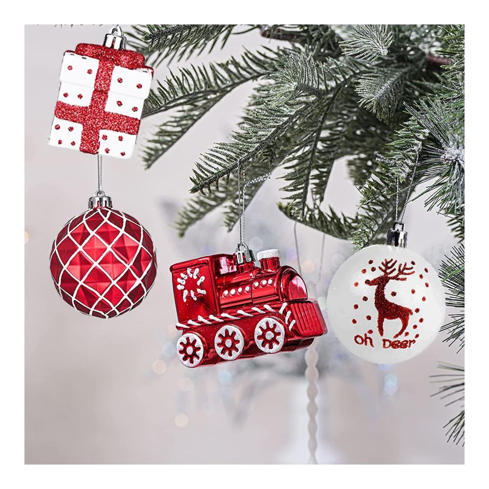 Exquisite Handwerkskunst: Unsere fantastische Weihnachtsdekoration enthält spezielle Oberflächen: glänzend, matt, Glitzer. Jede Weihnachtskugel wird blasgeformt und dann handbemalt. Verschiedene Ausführungen und neuartige Formen erfüllen alle Ihre Lieblings-Baumdekoration. Rustikaler leichter Baumschmuck wird die Weihnachtsbaumzweige nicht beschweren.