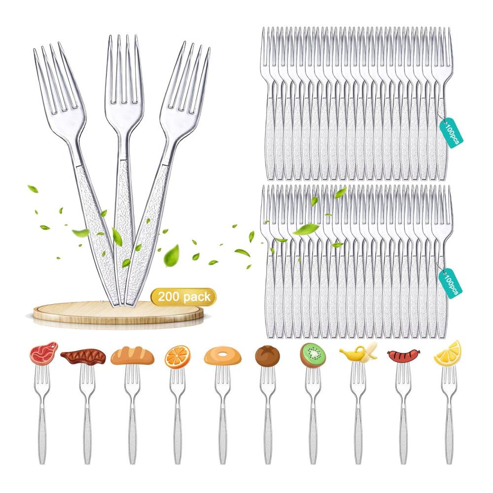 ✅【Kunststoffbesteckset】Packung mit 200 lang 5.7in 1in breit stabil und brechen nicht Clear Plastic Forks Washable Reusable, clear Plastikgabel ist ideal für die Verpflegung für große Zahlen.