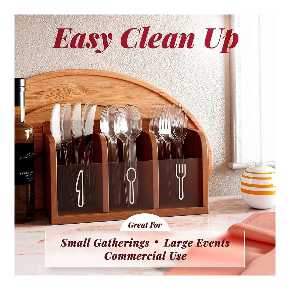 ✅【Praktisch】Das Plastikbesteck ist leicht abwaschbar und wiederverwendbar, für ein schnelles und effizientes Aufräumen nach der Veranstaltung und passt perfekt zu anderem Plastikbesteck und -geschirr. praktisch und abwaschbar. Das wiederverwendbare Besteckset ist sparsamer.
