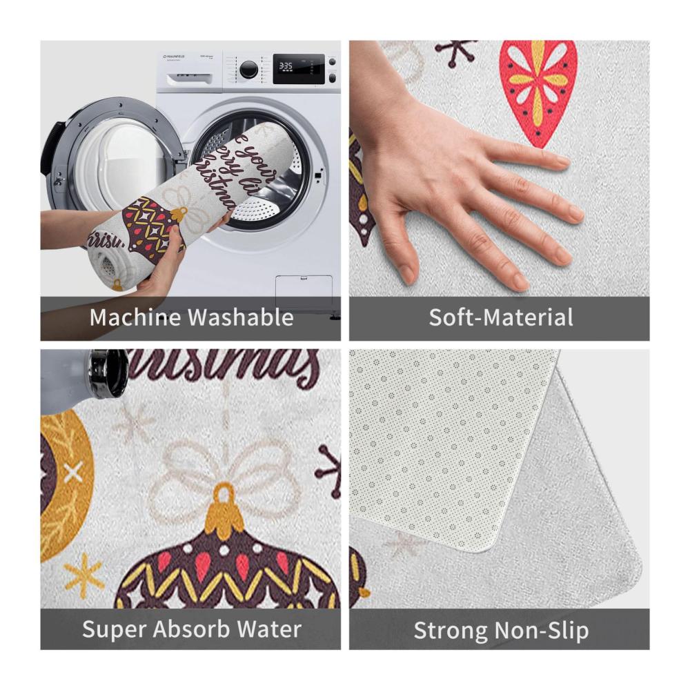 Erleben Sie Luxus mit unserem Badteppich rutschfeste, verziert mit bezaubernden Weihnachtsornamenten, die an Bändern hängen. Die Xmas-Elemente verleihen diesem Badvorleger eine niedliche Note, perfekt für Dusche und Badewanne mit den Maßen 40x60cm.