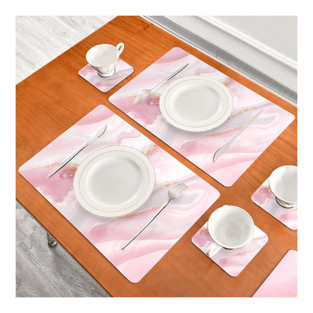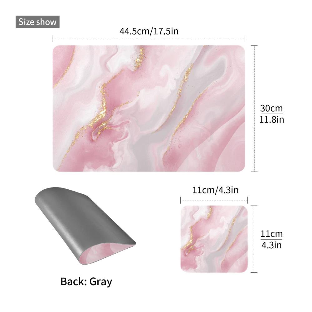 Erleben Sie Luxus mit unseren Rosa und Grau Marmor Platzsets und Untersetzer aus hochwertigem PVC-Leder. Leicht zu reinigen und wasserdicht bieten sie optimalen Schutz für Ihren Tisch.