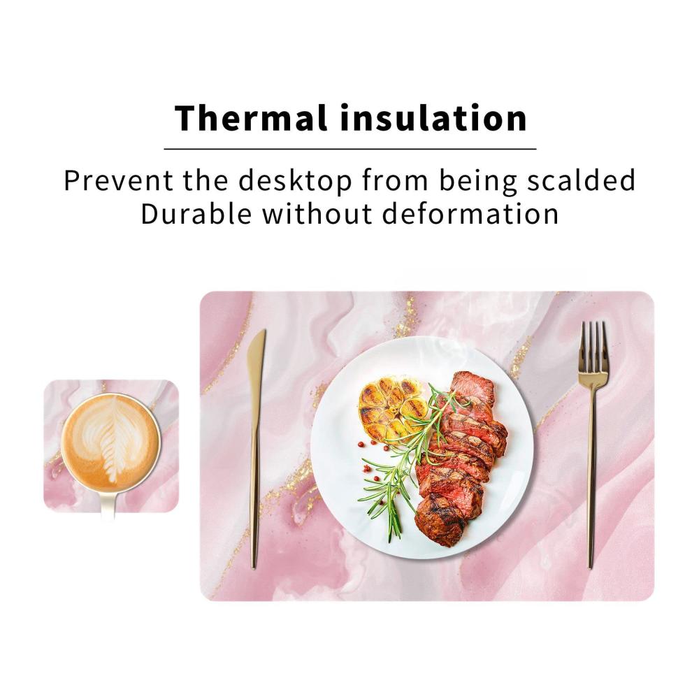 Gute Hitzebeständigkeit: PVC-Leder-Tischset ist hitzebeständig, verschleißfest und langlebiger für den täglichen Gebrauch. Geeignet für Esstisch, Schreibtisch, Café