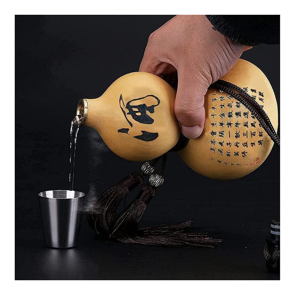 Freundliche Erinnerung: Der Flachmann ist mit einem Gummistopfen und einem doppelten Dichtungsring-Design ausgestattet, so dass der Wein nach dem Einfüllen nicht ausläuft; Denken Sie daran, kein heißes Wasser einzufüllen, die Wassertemperatur sollte unter 30 °C liegen. Da der Kürbis natürlich wächst, wird die Form unterschiedlich sein