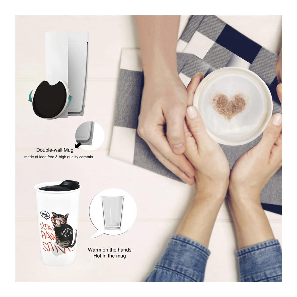 Hohe Qualität – Dieser doppelwandige Becher besteht aus langlebigem Porzellan, einem hochwertigen bleifreien und ungiftigen Keramik. Dieses Material produziert keine schädlichen Dinge für Menschen wie ein Kunststoff. Splitterfest und umweltfreundlich, besonders der Becher besteht aus doppelwandiger Keramik, um länger mit Ihrem Lieblingsgetränk zu wärmen, während Ihre Finger fit bleiben. Bitte achten Sie darauf, wenn das Getränk zu heiß ist