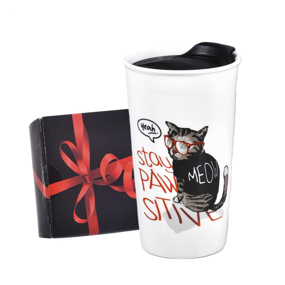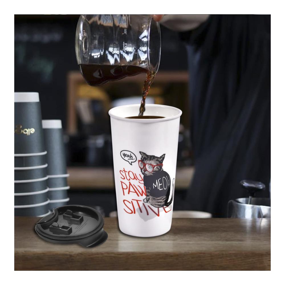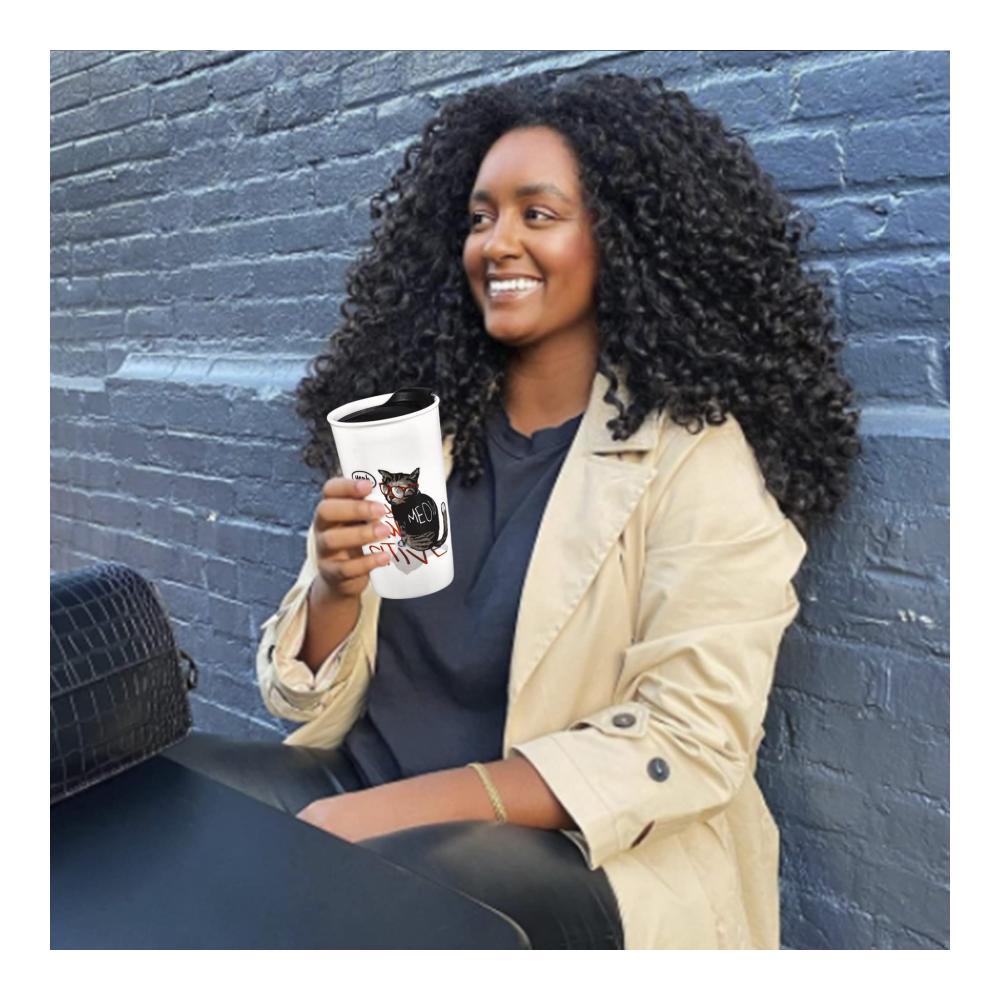 Der niedliche Katzenbecher für Katzenliebhaber ist ein absolutes Muss! Perfekt für Frauen, dieser lustige doppelwandige Reisebecher mit spritzwassergeschütztem Deckel ist mit MEOW Haustiermotiven und einer Brille dekoriert. Einzigartiges Design für Ihre Katzen-süchtigen Freunde oder Familie!