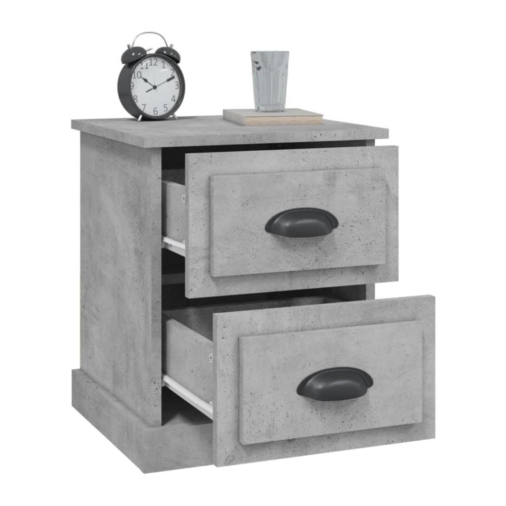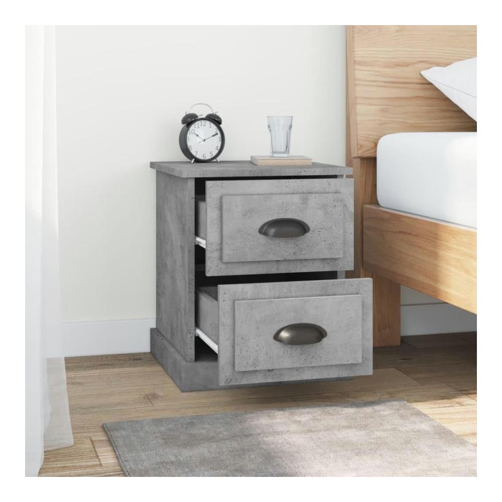 Dieser elegante und stilvolle graue HolztischDer Nachttisch besteht aus einer einzigartigen Verbindung von Holz und Beton und ist ein atemberaubendes St, das zu jeder Schlafzimmereinrichtung passt.