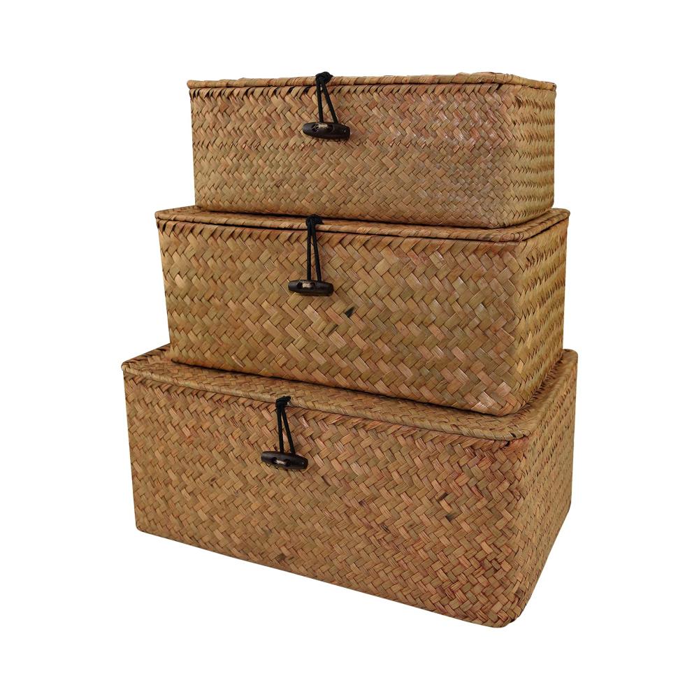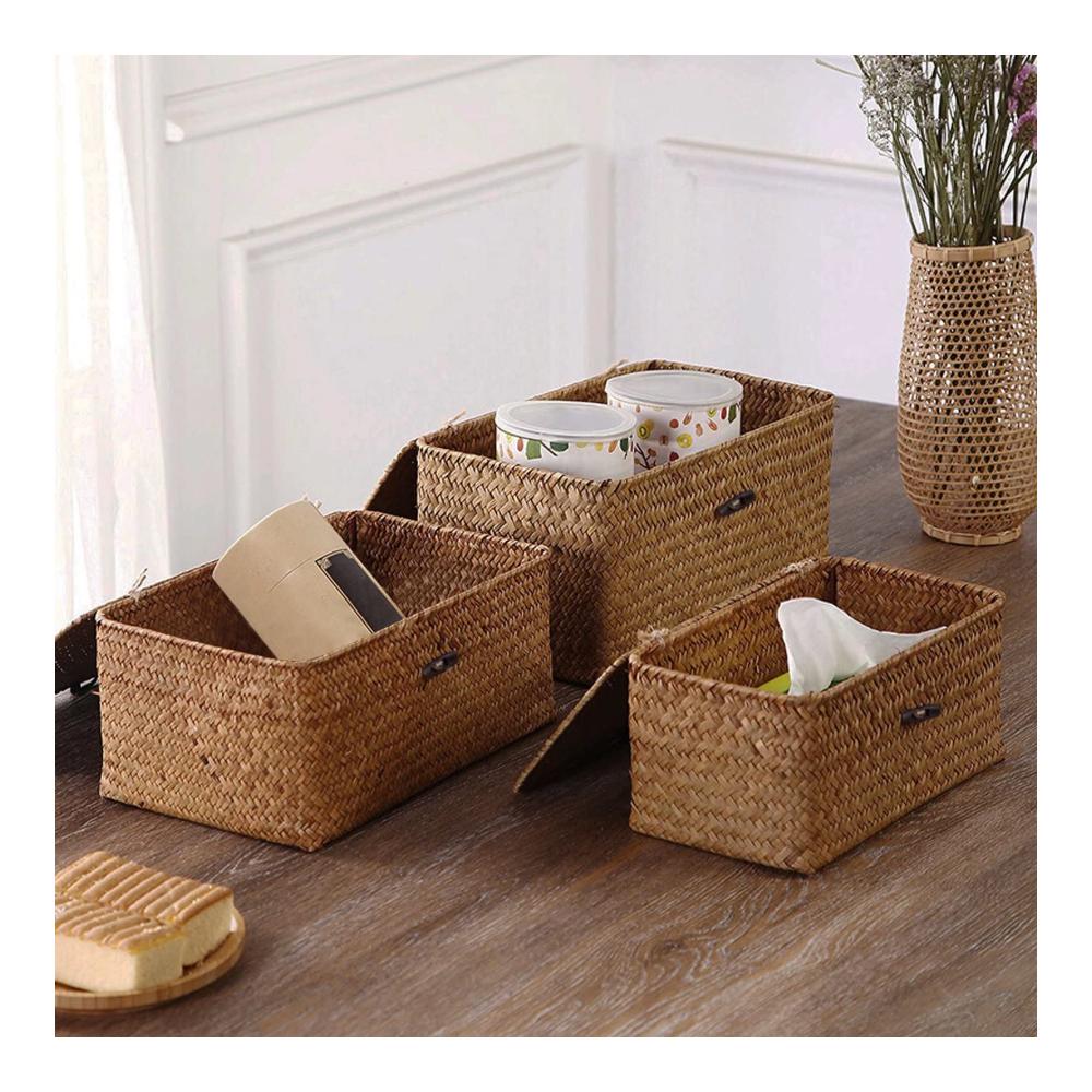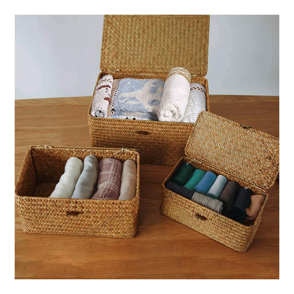 Seegras Aufbewahrungskörbe – 3er-Set, Abmessungen:(S M L)S 23x13x8CM,M 26X16x10CM,L 29X19X12CM.