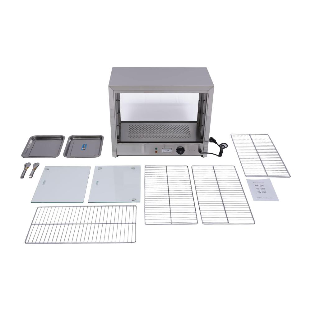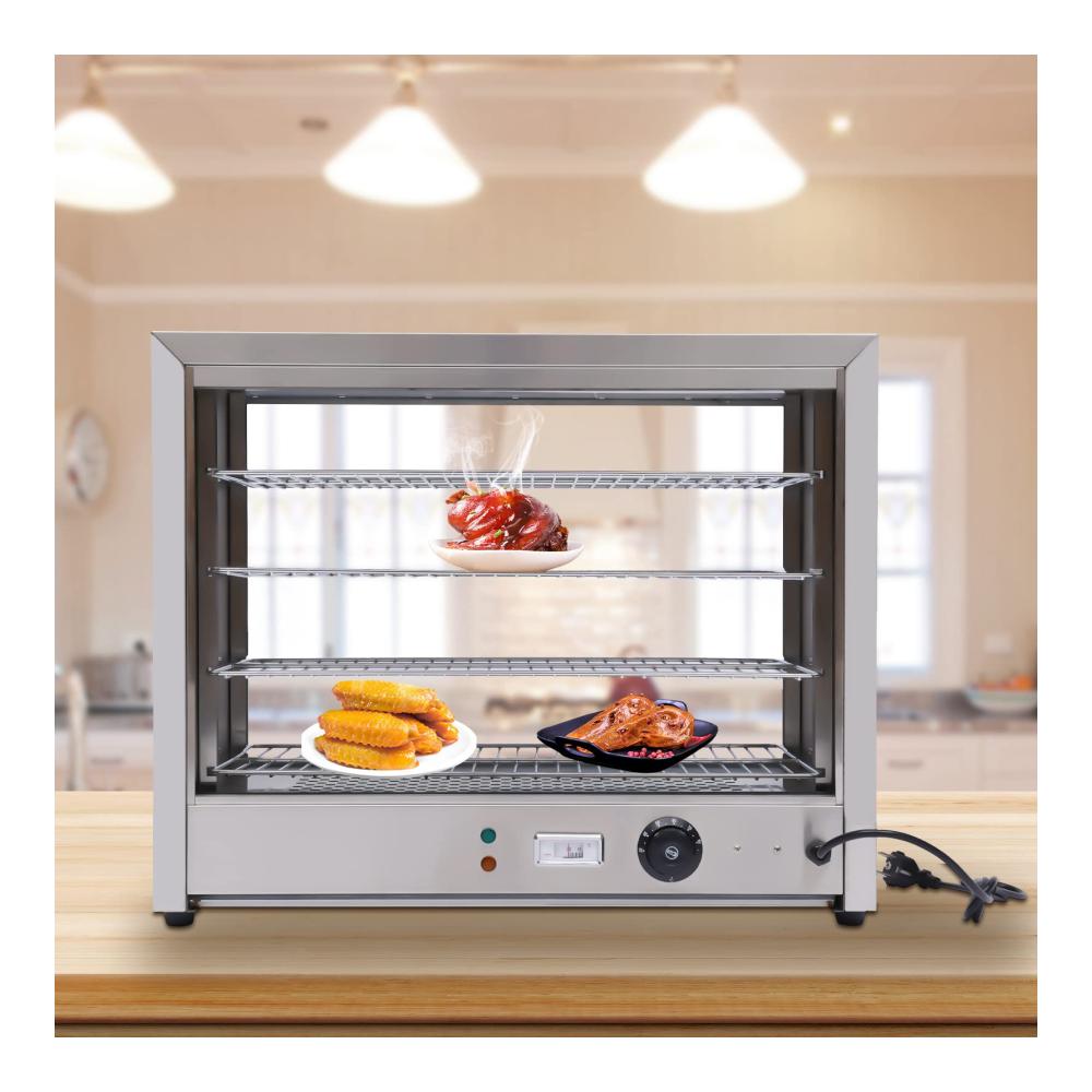 800-Watt-Lebensmittelheizgerät, hergestellt aus 304 Edelstahl, gehärtetem Glas und Acryl, Größe: 24&34;&34; x15&34;&34; x 20&34;&34; (61x38x51 cm). Magnetisches Design kann die Tür dicht halten.