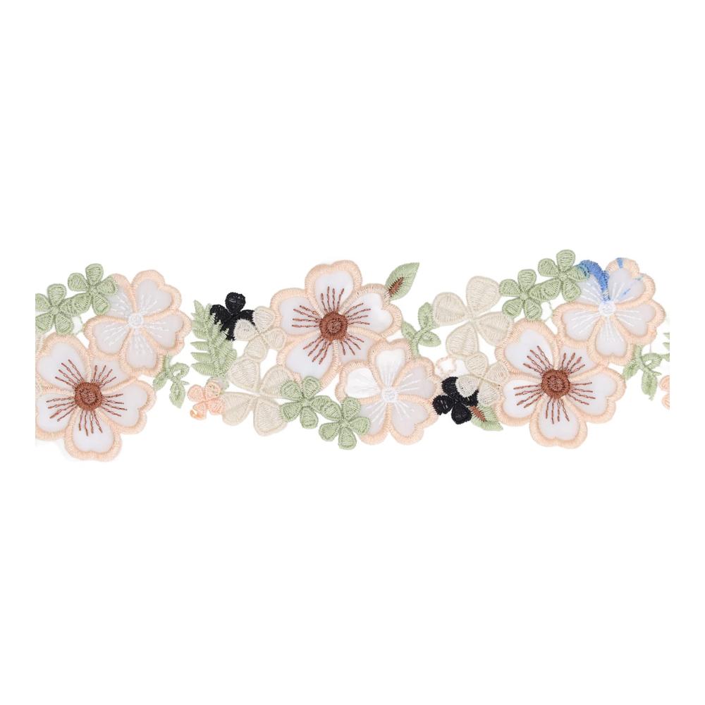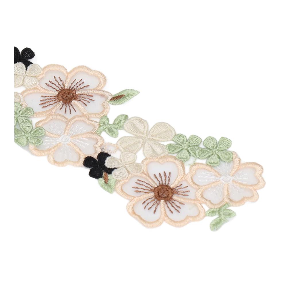 Farbenfroh: Diese Blumenspitze besteht aus vielen schönen bestickten Blumen in Grün, Beige und Schwarz.